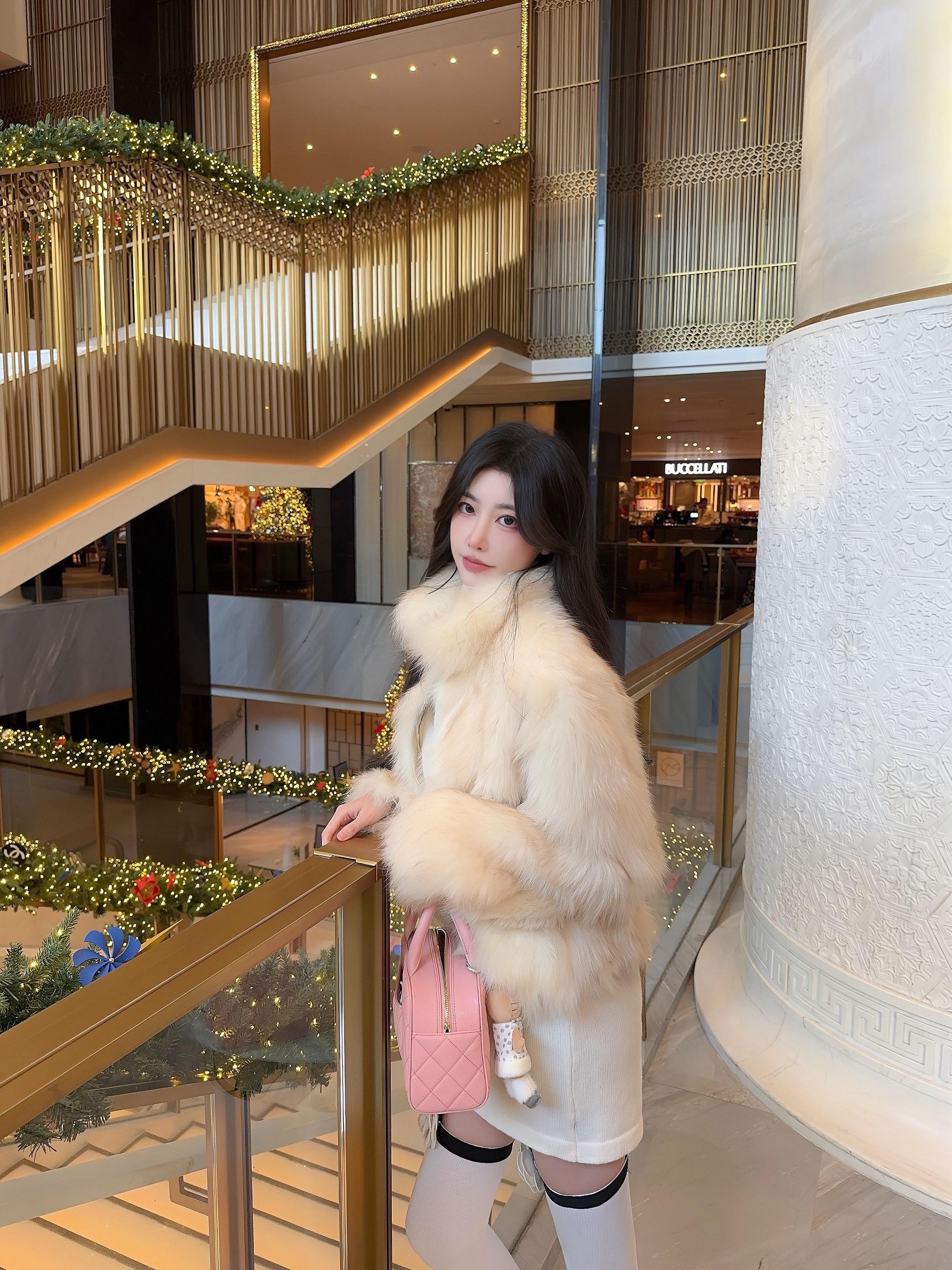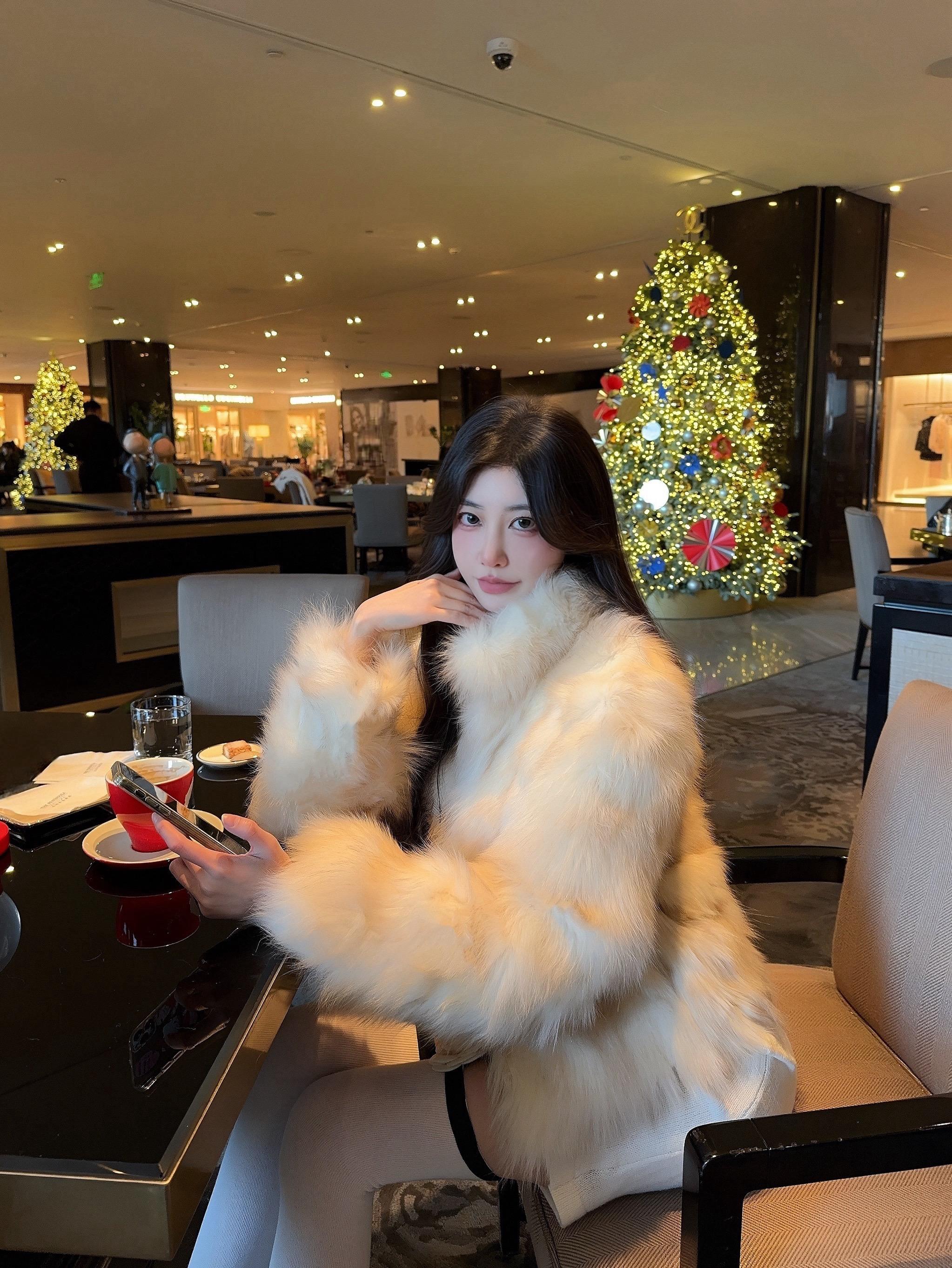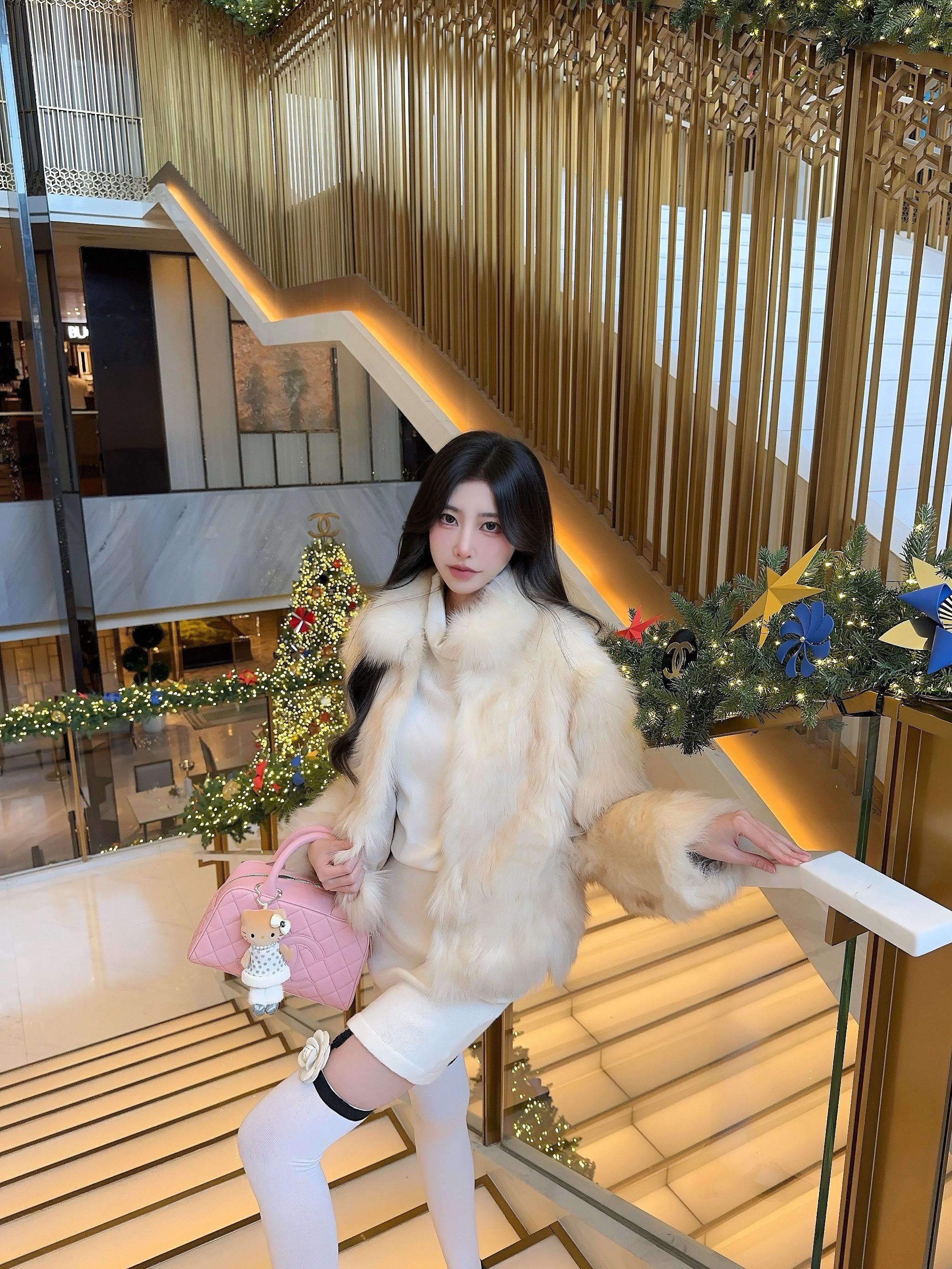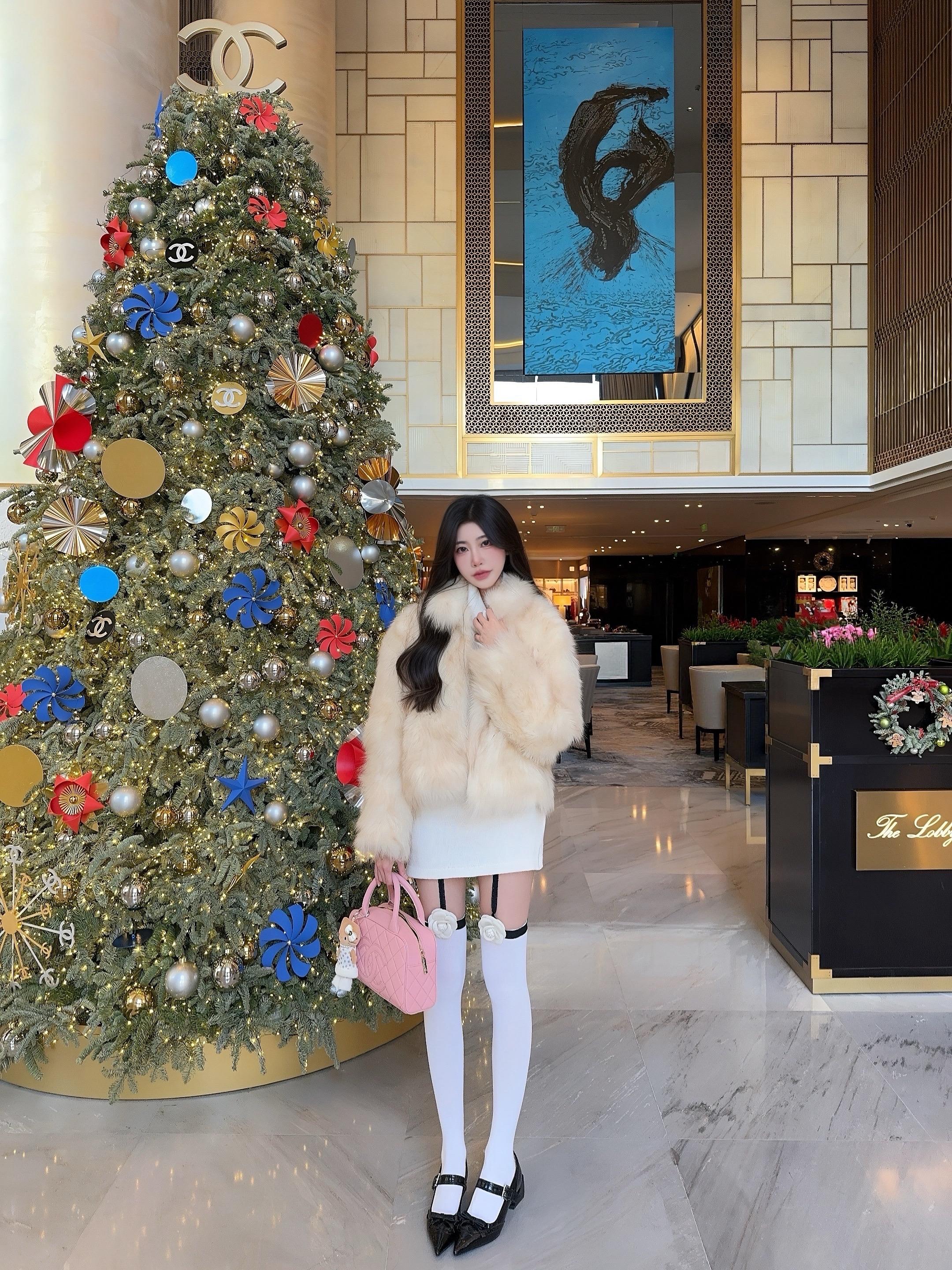 圣诞树下,美人如画。