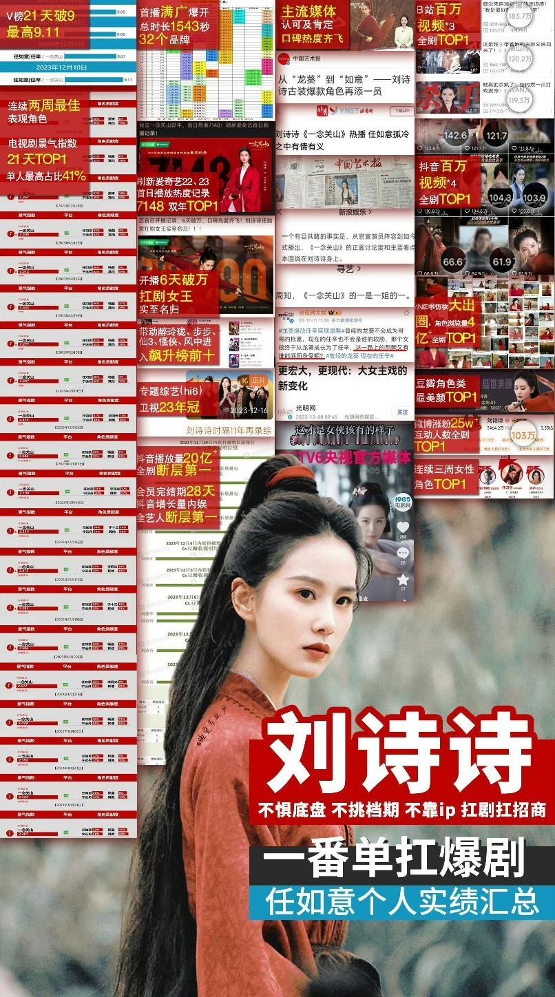 一念关山开播两周年 来欣赏一下刘诗诗任如意各大平台播前播后的各种断层TOP1吧