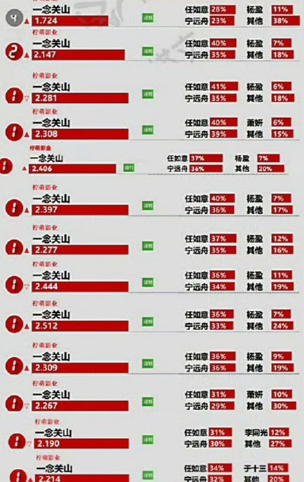 一念关山开播两周年 来欣赏一下刘诗诗任如意各大平台播前播后的各种断层TOP1吧 一念关山