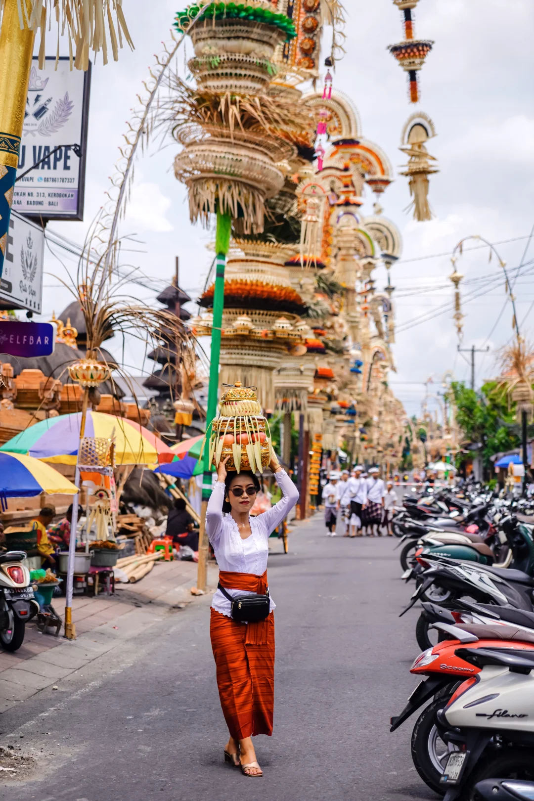 科普:按巴厘岛传统历法(Pawukon)每210天循环一次,持续10天,最终以“库宁安日”(Kuningan)为结束。节日源于巴厘岛神话传说,纪念正义之神战胜恶魔国王Mayadenawa的胜利,象征光明驱散黑暗。不仅是宗教庆典,更是巴厘岛人对历史记忆、祖先崇拜与道德价值观的传承。