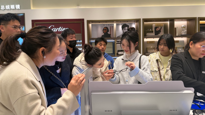 据了解,夸克AI眼镜此次全面接入阿里千问对话助手,实现了语音交互、拍照识图识物、屏显导航、实时翻译、智能提醒等核心功能的全面升级。因为产品刚刚发布供货比较紧俏,不少消费者为了第一时间来到授权门店体验。