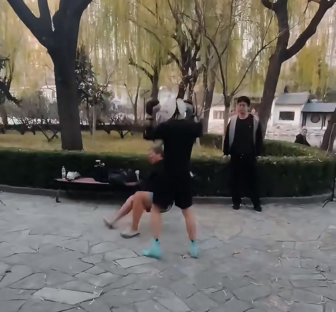 长期混迹于北京团结湖公园的传武大师凌D,被业余拳击爱好者KO,真打就露馅了。看他拍的视频,各种牛逼,和徒弟们对打,徒弟都只有挨打的份,一副大师四两拨千斤的举重若轻,好生了得。这不来了个不知天高地厚的小年轻挑战他,业余拳击爱好者,体重比他小了80斤,看起来弱不禁风,可是几个回合下来,凌D大师被KO,大师的遮羞布被年轻扯下来。