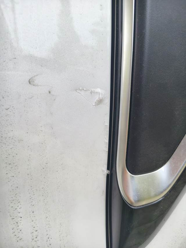 在车位被剐了 在车位停着被剐成这样,去修复凹陷+车衣花了800,也不知道谁干的,