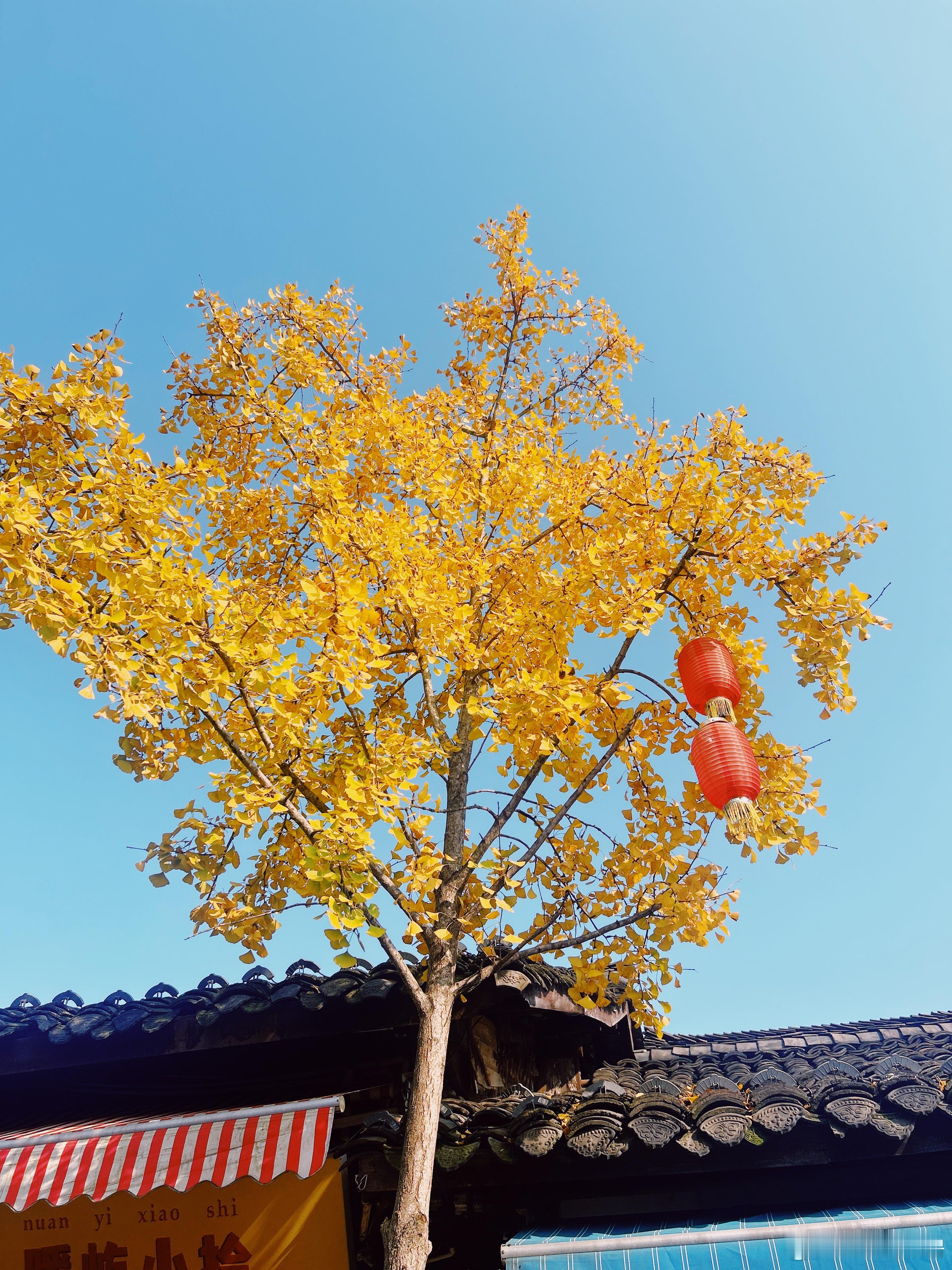 古城里的银杏就悄悄黄了忍不住放慢脚步抬头看看那满树的金黄阳光好的时候银杏叶在阳光下透亮透亮的像一片片金色的琉璃风一吹就簌簌地落下来铺在人行道上形成一条金黄的小路是秋天独有的美好温柔又治愈有人在树下散步有孩子在追逐嬉戏有人举着相机记录下这美好的瞬间我坐在肯德基里吃着晚午餐享受这悠闲的时光日常我的日常plog银杏 阆中·阆中古城