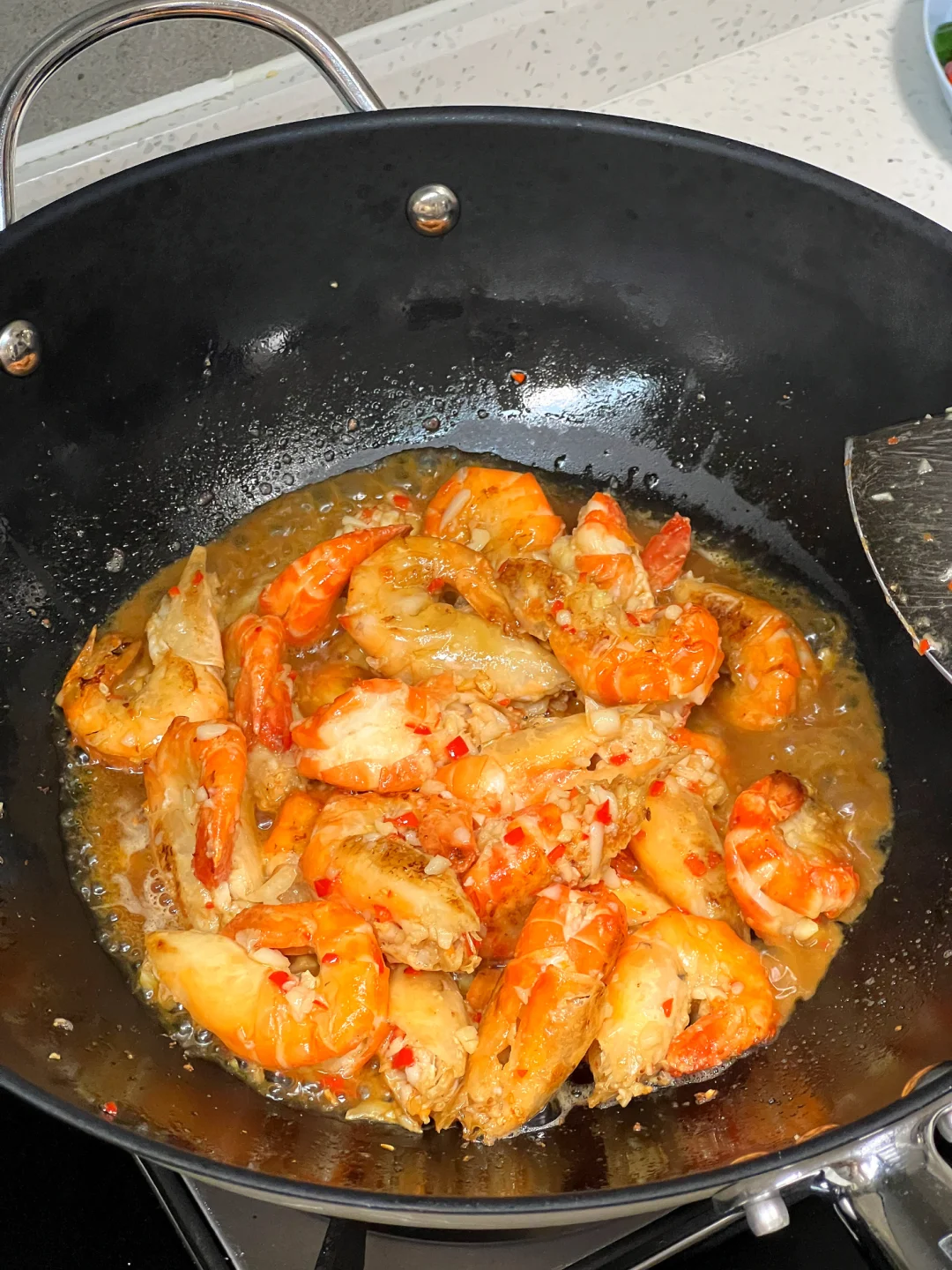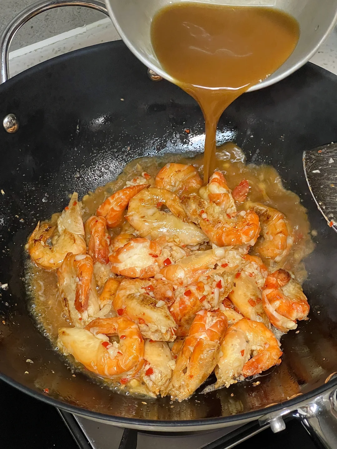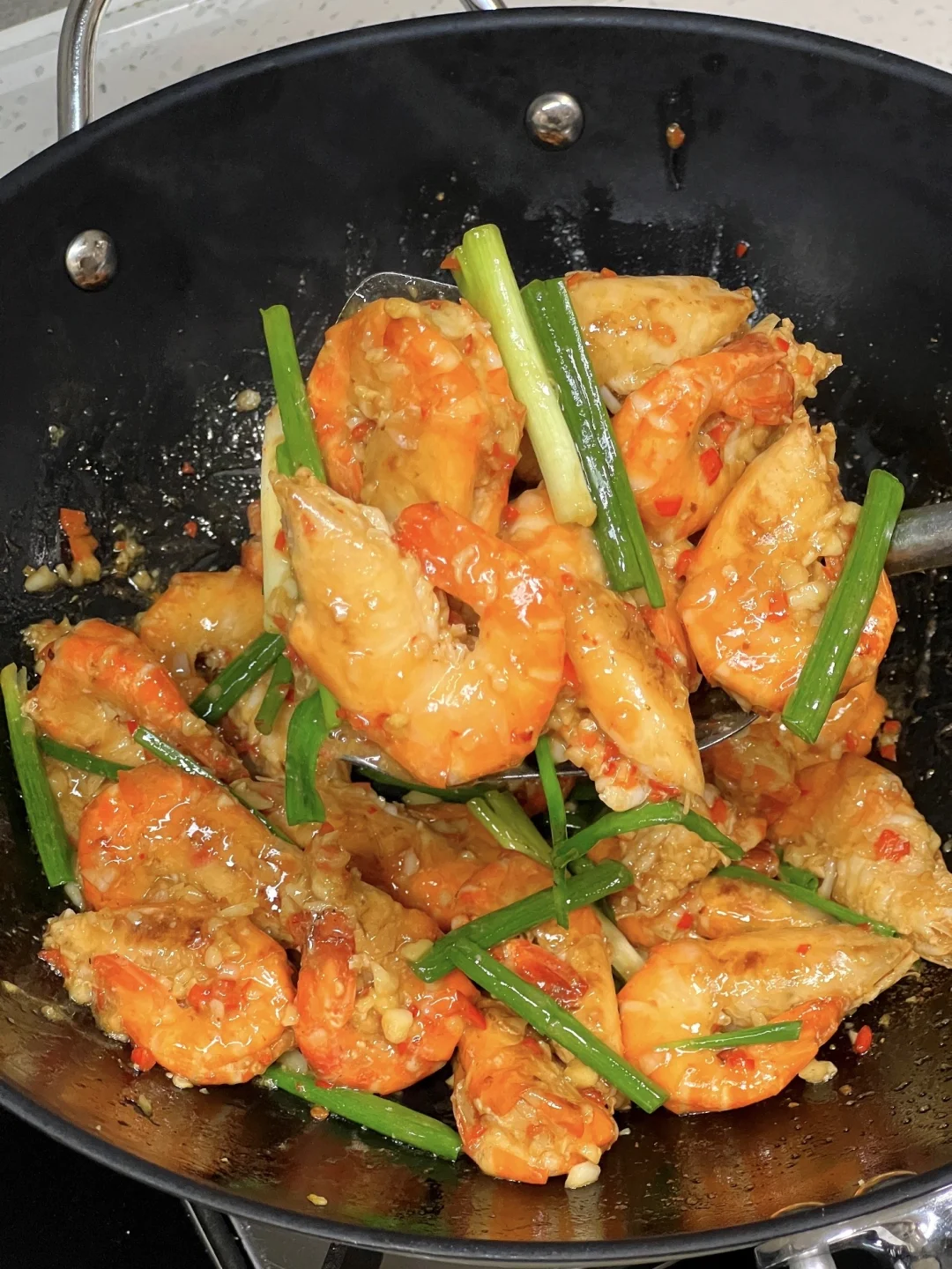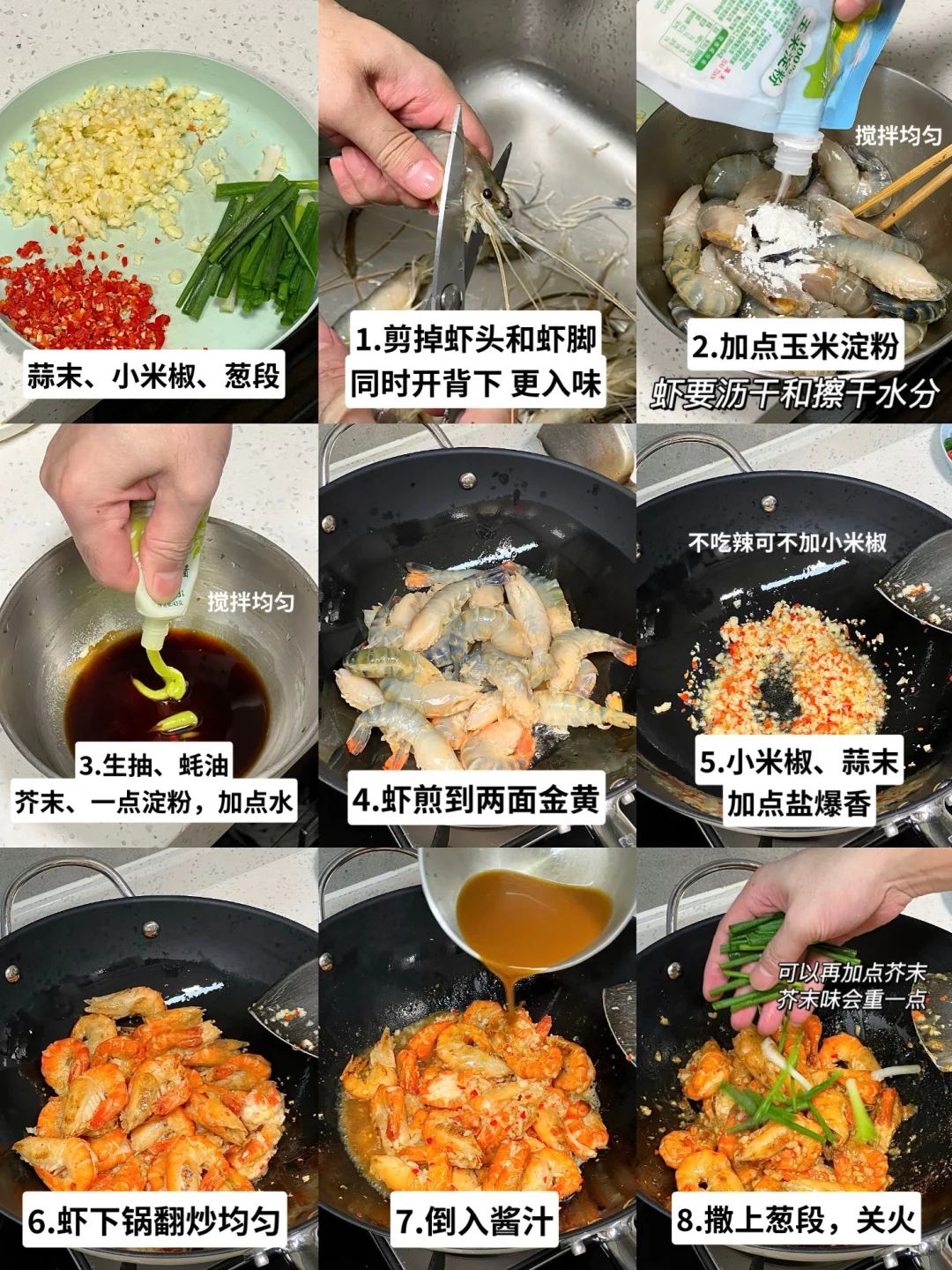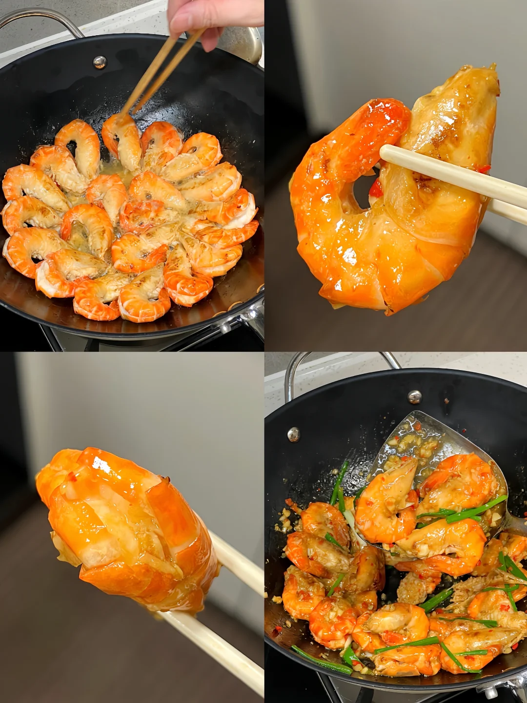 不愧是火遍全网的芥末罗氏虾 味道真的很新奇惊艳 只嗦了一口壳上的味道,就深深爱上[笑哭R]芥末的味道并不会掩盖虾的鲜味,还使整体的味道更有丰富有层次!! 吃完喊男朋友第二天还要做[色色R][色色R] 📝食材准备 罗氏虾(用明虾也行) 蒜末|葱段|芥末|小米椒 🧑🏻‍🍳做法易上手 1.虾剪掉虾头和虾jio,同时开个背,更入味。清理好沥干和擦干水分,加入适量玉米淀粉拌匀 2.调个酱汁:生抽+蚝油+玉米淀粉+芥末(可以多加点),搅拌均匀 3.油热虾下锅煎至两面金黄,盛出待用 4.重新起锅,小米椒、蒜末,加点盐爆香 5.虾下锅翻炒均匀,倒入酱汁翻炒两下,收汁 撒上葱段,关火,出锅开炫 这个做法我觉得是罗氏虾天花板做法,好吃到壳都想嗦掉🤤 做法也容易上手,还没吃过这个做法的快去做!真的很好吃!让人眼前一亮[哇R][哇R]