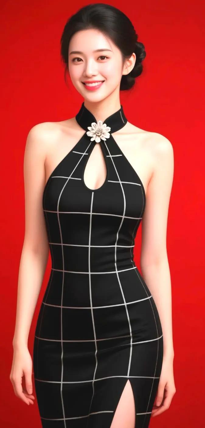 优雅旗袍秀,粉嫩与格纹的完美碰撞!