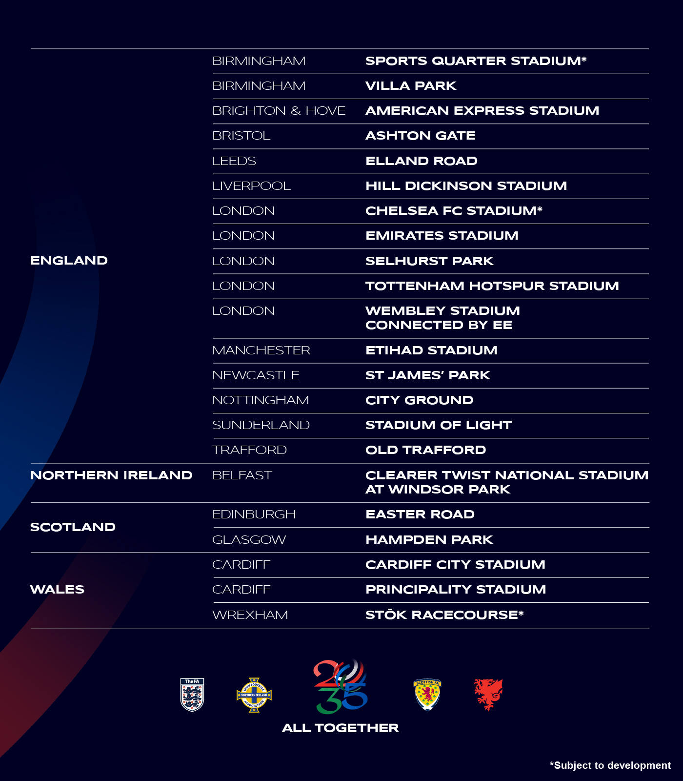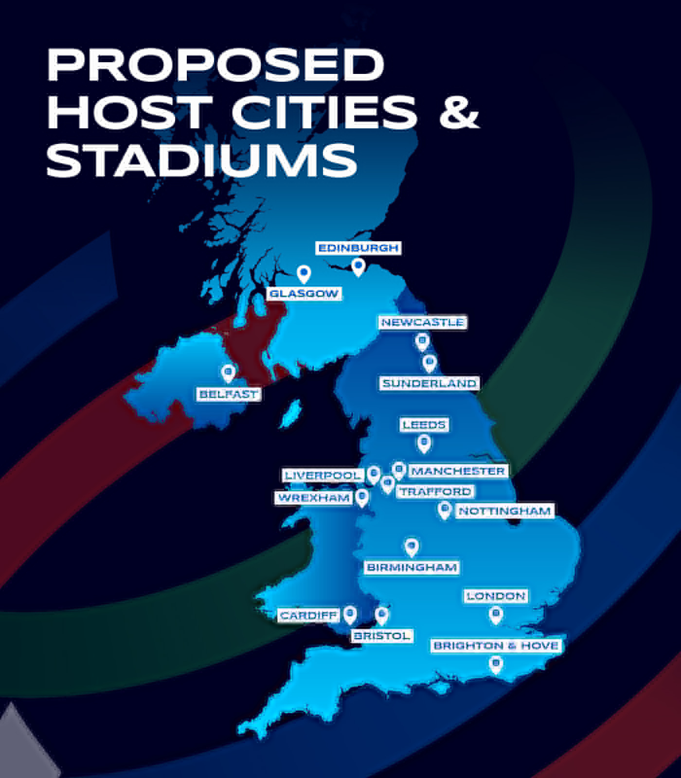 作为唯一申办方,英国已于周五向国际足联正式提交 2035 年女足世界杯联合申办提案。若申办成功,该赛事将成为英国举办过的规模最大的单项体育赛事。此次申办初步列出了涵盖 16 个主办城市的 22 座候选球场,其中英格兰 16 座、威尔士 3 座、苏格兰 2 座、北爱尔兰 1 座。国际足联将于 2029 年左右将这份长名单缩减至 16 座球场。安菲尔德球场草坪尺寸不达标只能成为大赛“绝缘体”