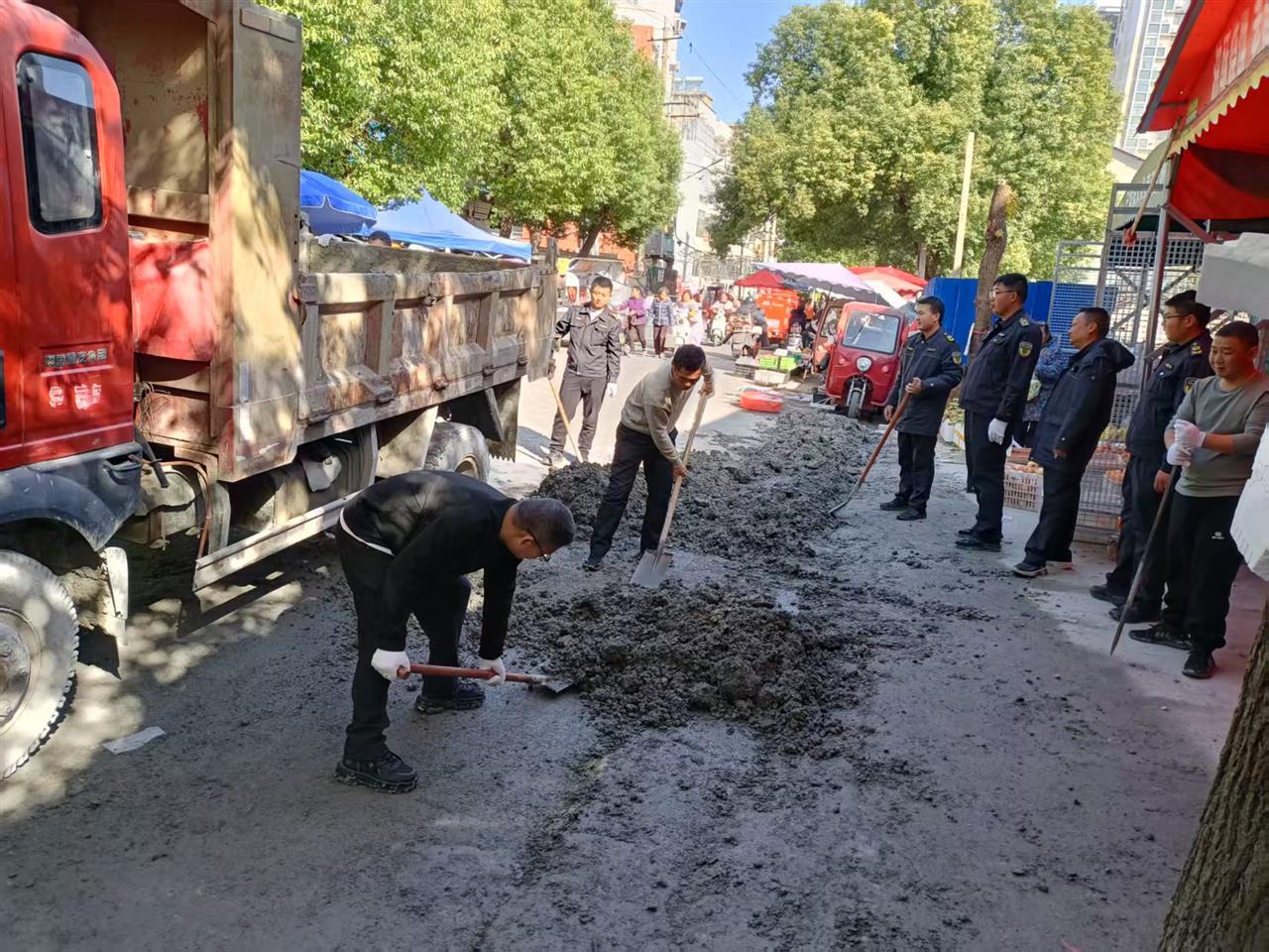 在执法过程中,部分商户起初对整改要求存在抵触情绪,执法人员耐心沟通,结合实际案例向商户讲解违规占道经营的危害,经过反复劝导,多数商户认识到自身行为的错误,主动配合整改工作,上午邾城街出动执法、环卫人员20余名,联合商户拆除了违规铺设的混凝土平台,及时清理运走建筑垃圾,冲洗地面恢复整洁。