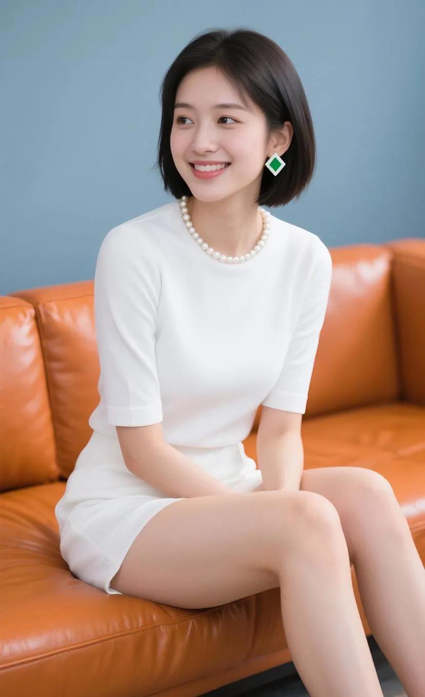 美女笑容太治愈了!她身着浅灰无袖针织连衣裙,竖纹肌理勾勒出优雅曲线,简约版型衬得