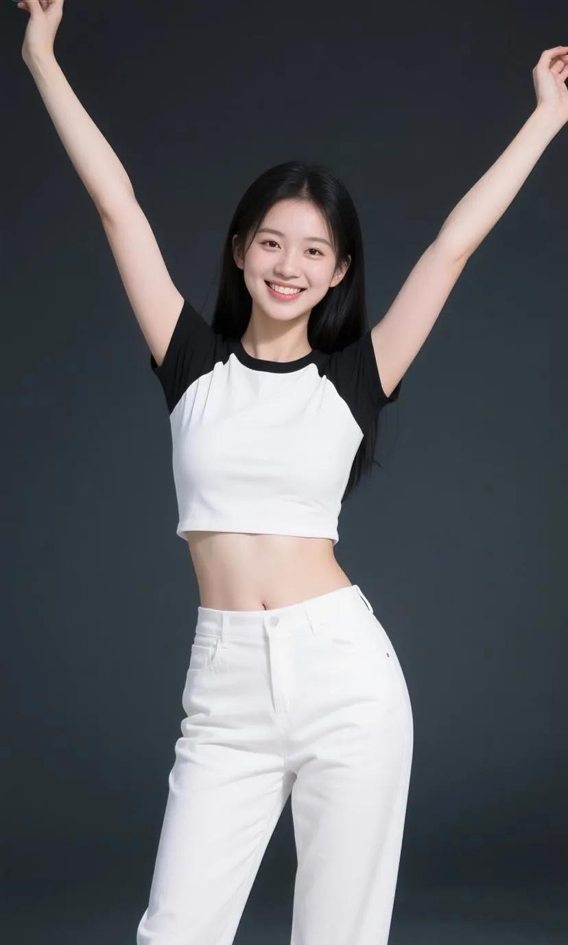 晒图笔记大赛白色短款T恤配橙黄渐变紧身裤,渐变裤装的亮眼色彩是核心亮点,简约搭配