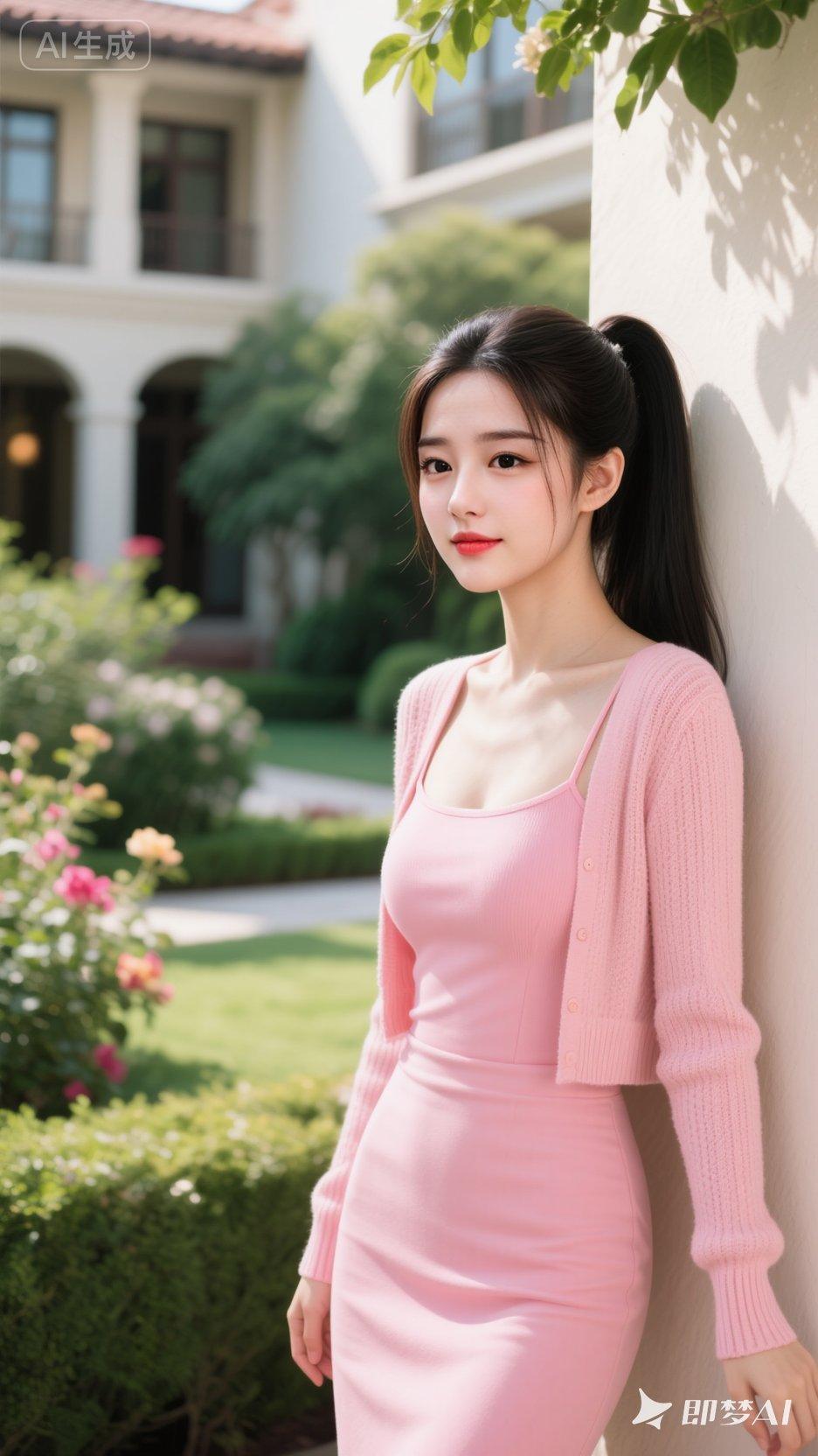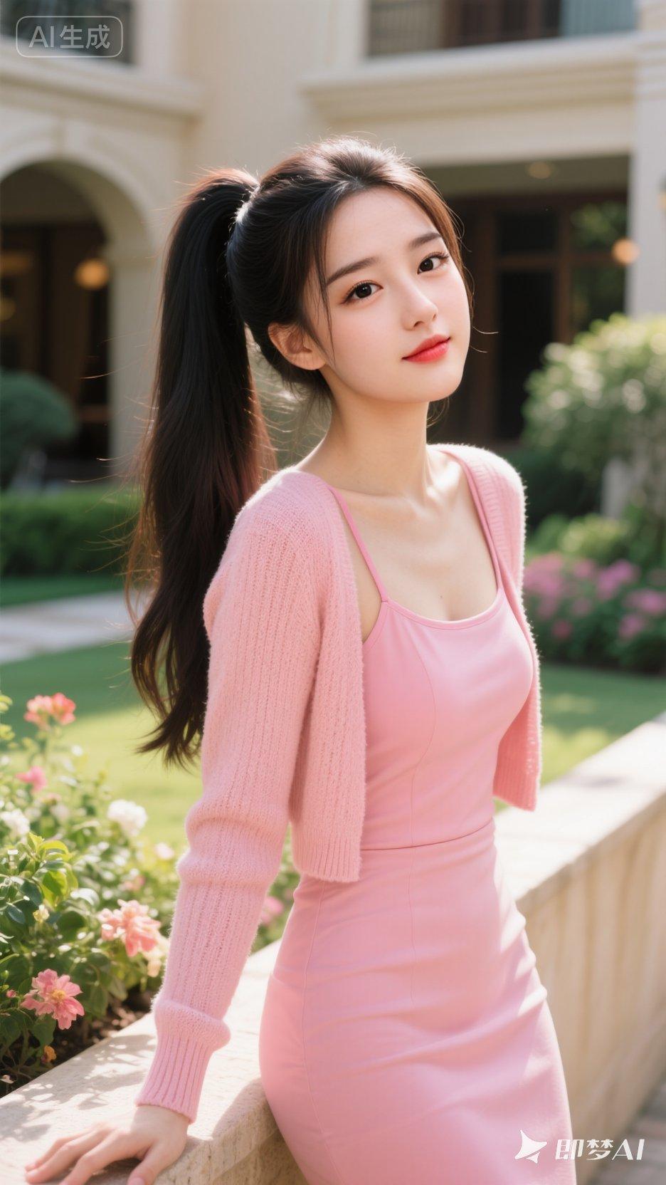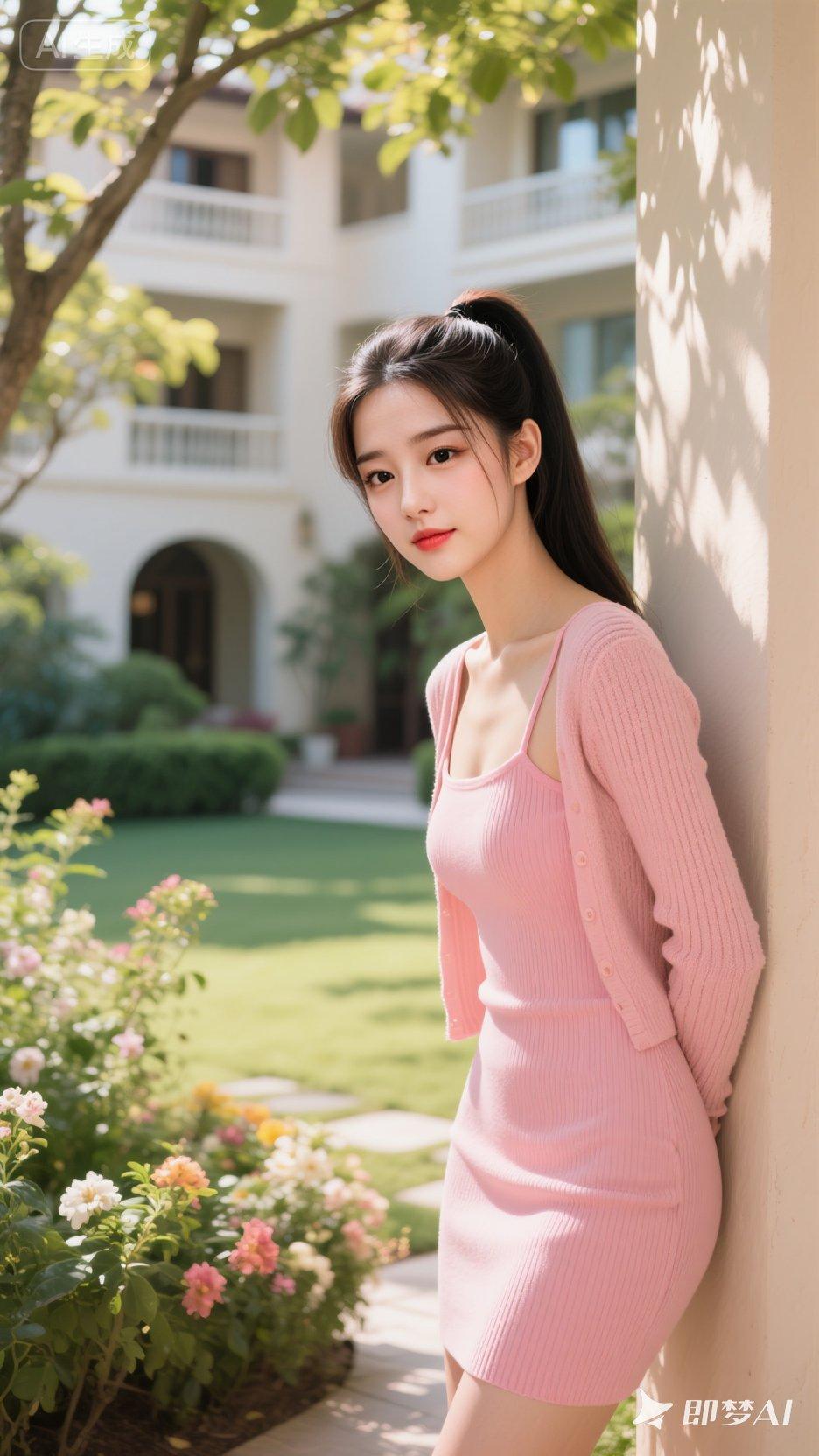 美女笑容太治愈了!她身着浅灰无袖针织连衣裙,竖纹肌理勾勒出优雅曲线,简约版型衬得
