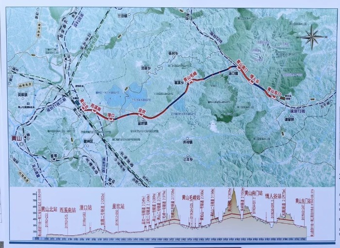 线路全长43.62km,沿线共设车站8座。图源:黄山日报