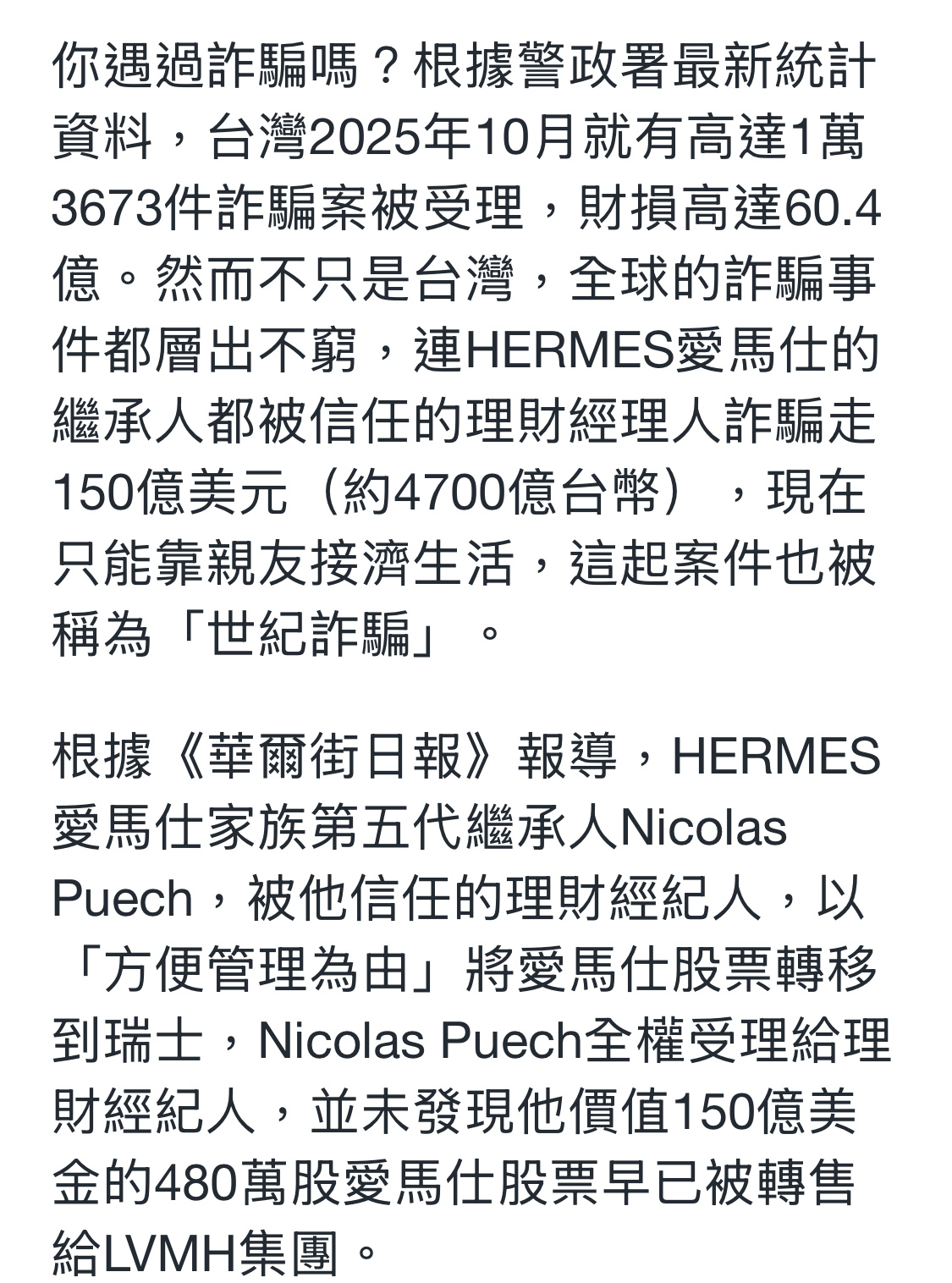 顶级有钱人这么好骗的吗?!爱马仕继承人被骗走150亿美金,也就是1000亿rmb