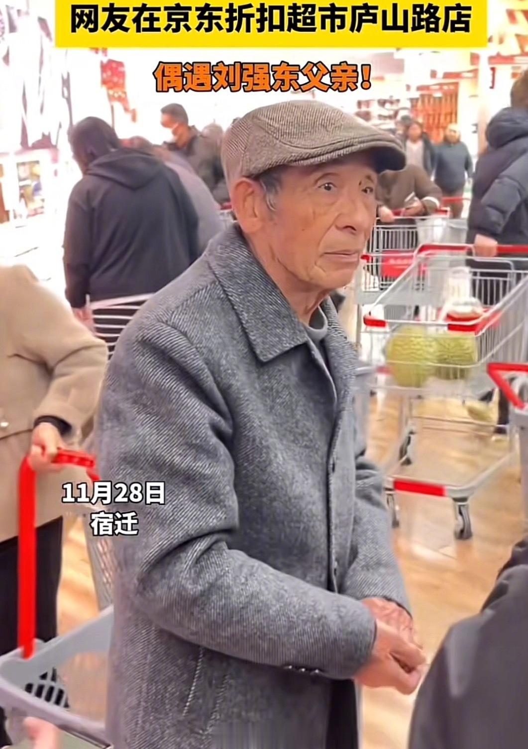 #刘强东父亲现身京东超市#偶遇刘强东父亲逛自家超市,工作人员陪同,刘强东妈妈在食堂帮忙,刘强东送外卖,一家人真勤奋。