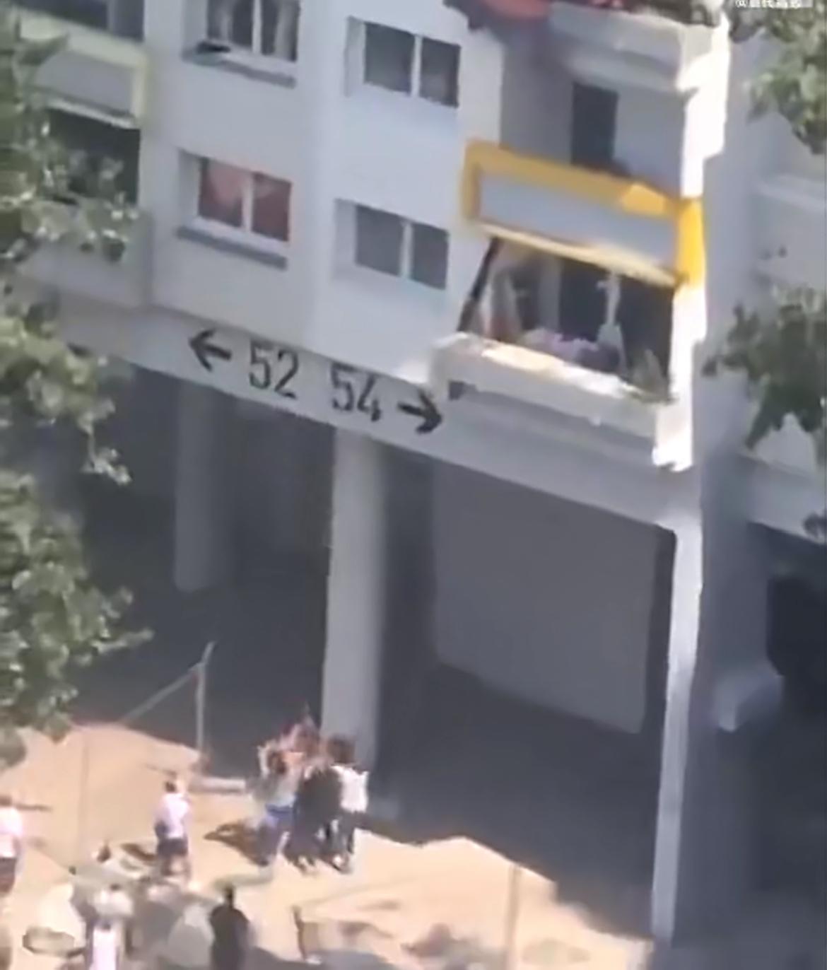 法国一栋公寓起火,家里两个小孩紧急逃生,楼下的徒手接住了他们,小孩没有受伤,下面