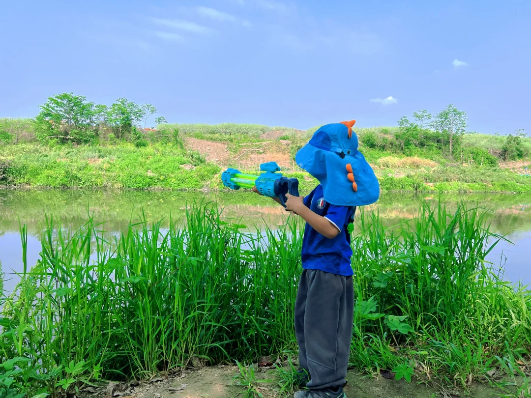 💚河边有一片草坪,可以露营,也有一个滑梯,小朋友也可以在旁边玩,还可以玩水枪🔫 总体来说这个地方还是很舒服😙❤️