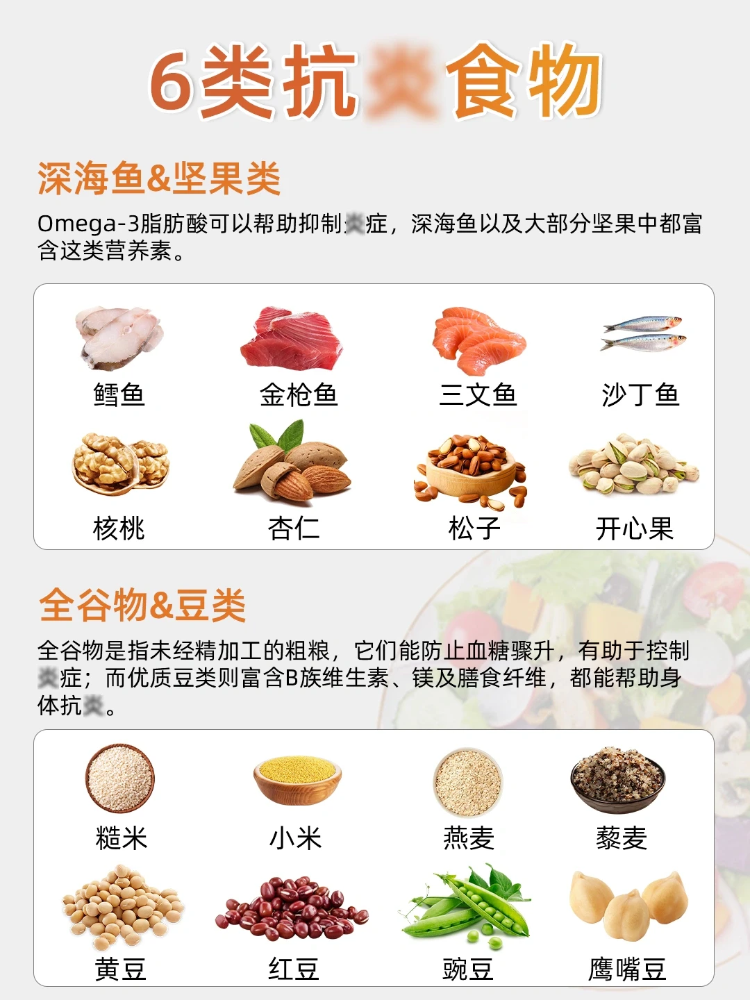 ✅深海鱼类&坚果类:富含Omega-3脂肪酸,抗yan ,抑制yan症;