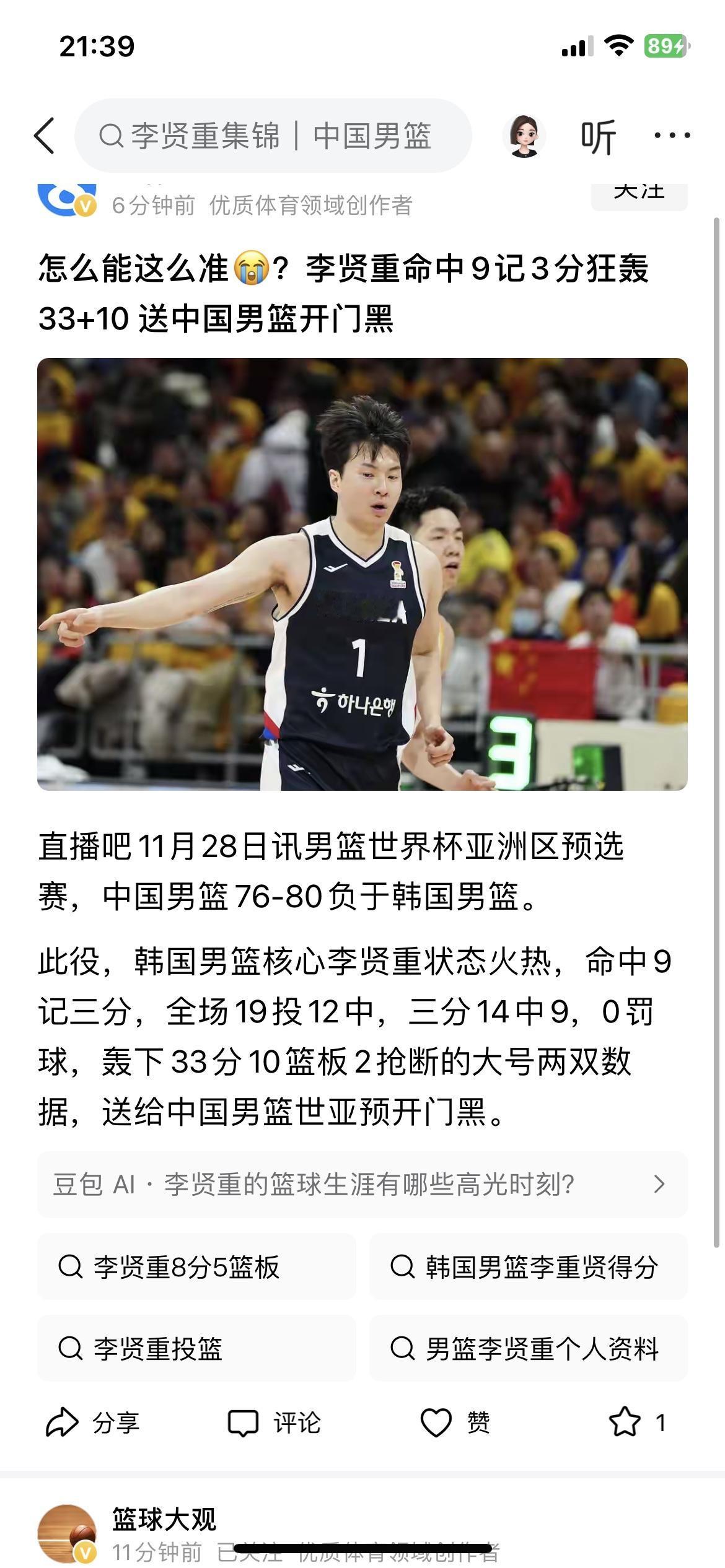 那么多大腕、名流、篮球专业人士齐聚五棵松现场观战,本希望中国队能在主场爆锤韩国队,所有人皆大欢喜,过一个愉快的周末,没想到中国男篮竟然给他们拉一坨大的。从未在中国队主场赢过球的韩国队,竟然爆锤了中国队,又开创了一个历史记录! 可能是主场作战,球迷众多,球员压力很大,手感太差,进攻不顺。但是防守也防不住就很奇怪了,韩国队李贤重一个人投中9个三分球,得33分,但是最关键的是他一个罚球也没有,说明了什么? 就是对他的防守强度不够,防得不够狠,不敢犯规,没有贴身防,每个人过来都是象征性的举一下手,投篮进不进就看李贤重自己的手感了,所以就被他一直投,给投死了,不知道这是教练布置的,还是防守球员自己的问题。 和输给菲律宾的两场球一样,全是被不讲理的外线三分给投死的,中国队就没有对这种神投手有什么针对性的布置和策略,中国队有朱俊龙,曾凡博,张镇麟,雷蒙,不都是很能防的嘛,竟然防不住一个李贤重,竟然让程帅彭在外线防他,这都怎么布置的,你但凡给他上点强度,给他一个强硬的打手犯规,都当你认真防了!