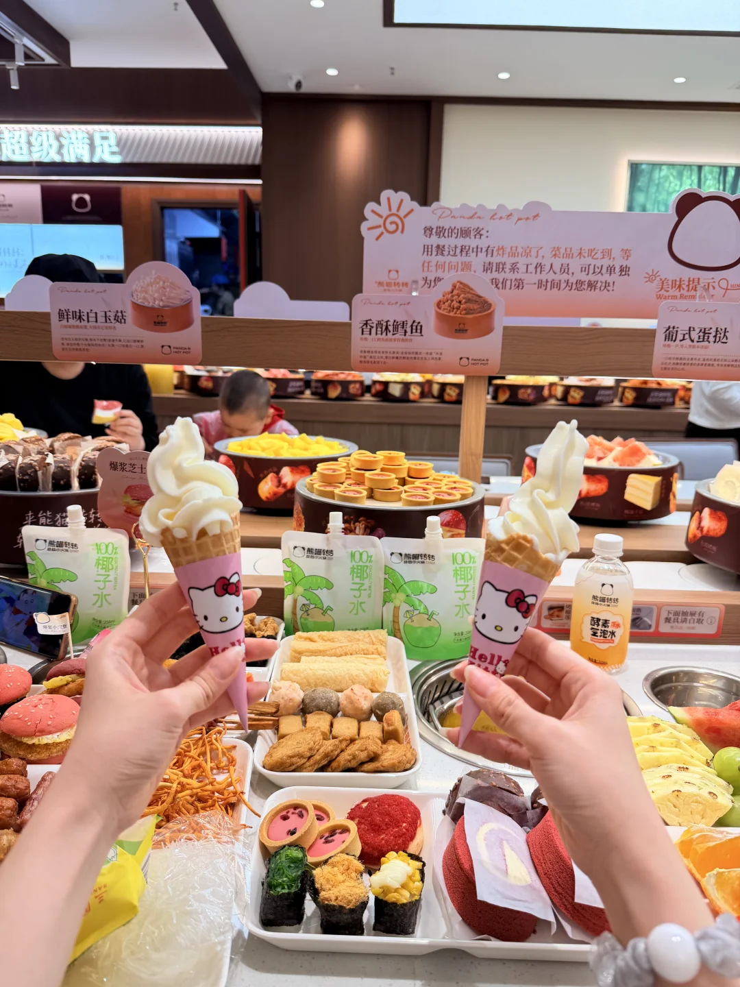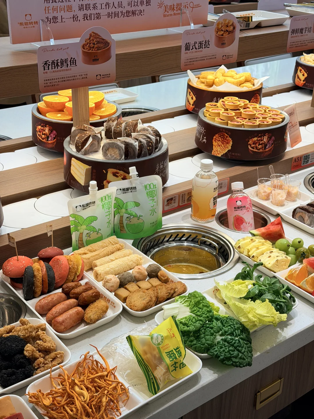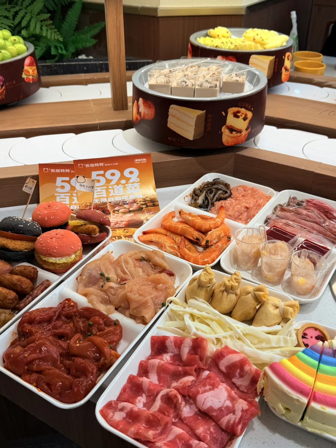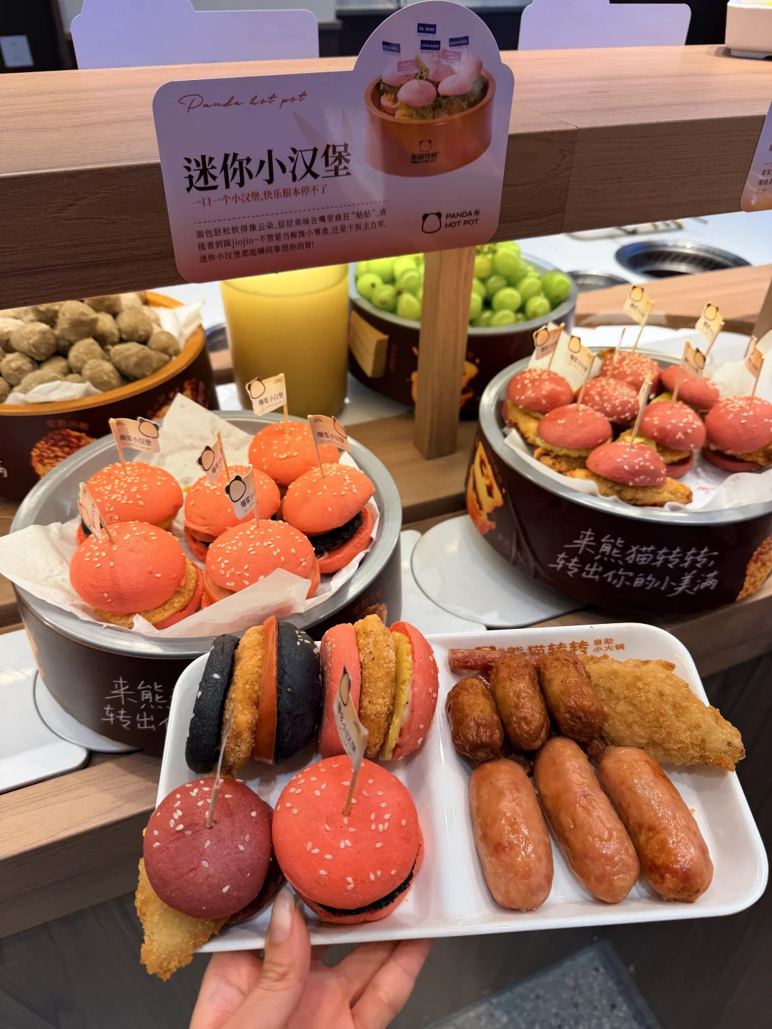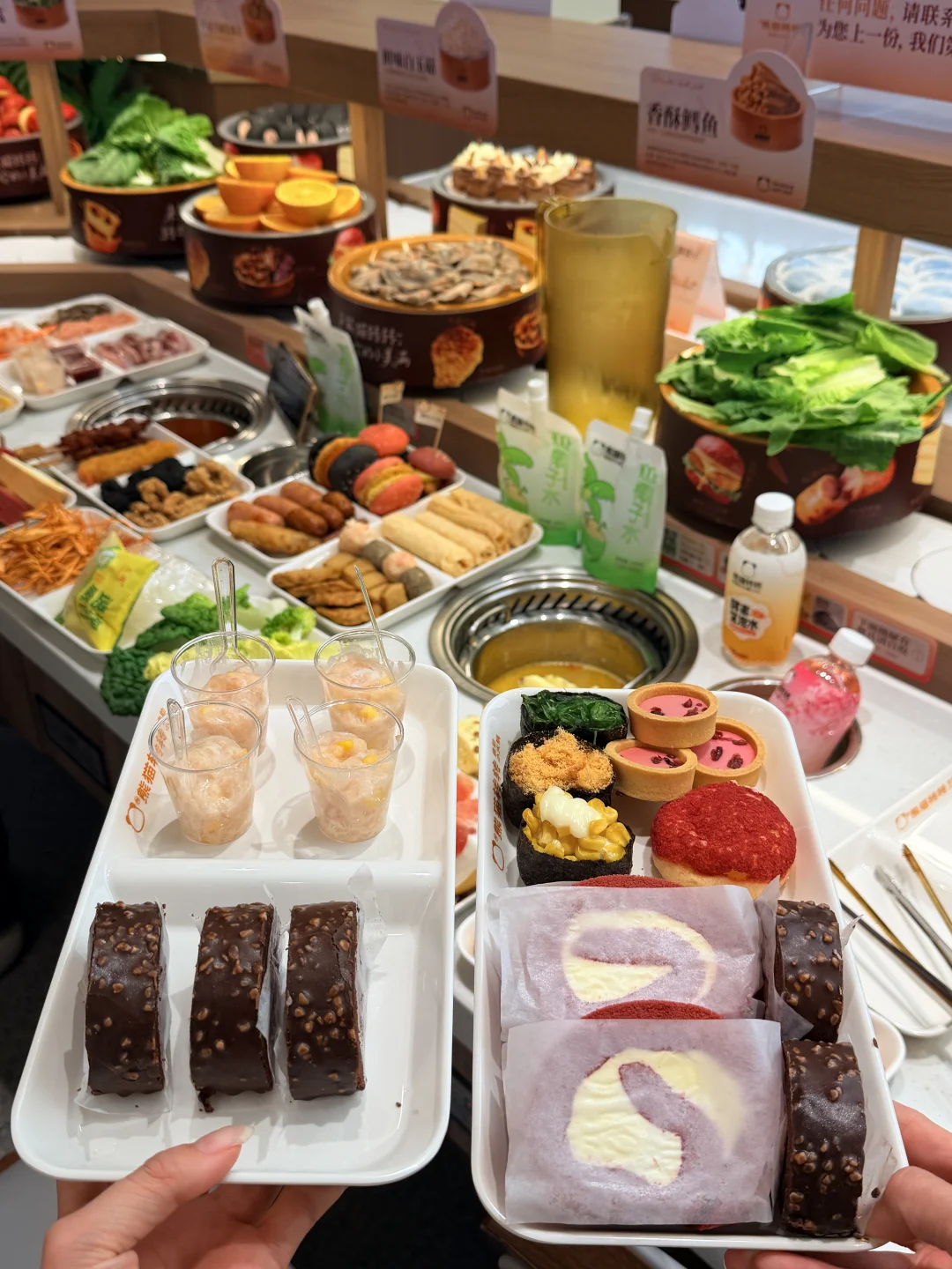 百十来道菜品 直接让你实现 🥩肉肉自由 🍉水果自由 🍗炸鸡自由 🍮甜品自由 而且菜品毫不敷衍 精致到尖叫 粉色芝士爆浆小汉堡🍔直接戳中我💗巴 好利来同款半熟芝士🧀吃个够 一人食 也能拥有满汉全席的快乐! 你就负责带个肚子来 保证能扶着墙出去! 6种锅底随便你选 青麻椒、牛油、香辣、番茄 连吃一周都不重样…还有我喜欢的花胶鸡口味 清淡又养生 一个人吃火锅再也不是十级孤独啦~