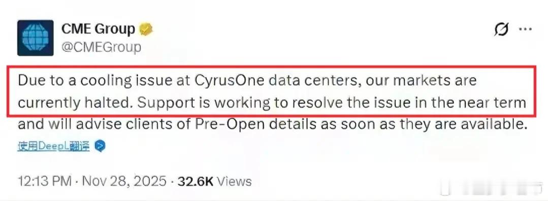 黄金白银涨疯了!Comex白银怒涨6.5%,再创历史新高。大空头遭逼空,芝商所(CME)又开始耍赖拔网线:美国时间周四夜盘开始后不久,所有期货交易突然暂停,包括Comex黄金白银,且夜盘已经发生交易,被宣布作废。暂停一直持续到北京时间昨晚9点半,也就是美国那边周五早上开盘,才恢复正常,之后金银继续狂飙,空头遭到严重逼空。CME对此给出的解释是:CyrusOne的数据中心冷却系统发生故障,并称将努力在“短期内”解决该问题。这话鬼tm才信,这摆明了就是大资金做空撑不住了,需要时间来解决空头合约,或者找到交割物。要知道Comex的白银库存,已经从9月底的1.654万吨,降至本周三的1.428万吨,降幅近14%。你没货交割,要么就在高位被轧空、平仓割肉,要么就移仓换月扩大损失。事实上,就在CME拔网线之后,伦金所的现货白银价格,立马出现了一波小跳水,这明显是多头平仓,怕空头搞事情。有人猜是小摩,也就是摩根大通搞的鬼,因为小摩是Comex白银的最大空头,其空头头寸占市场空单总规模的40%以上。要知道,CME的交易品种极其广泛,每天涉及的合约规模是个天文数字,10月日均成交2630万份合约,价值数万亿美元,其信息系统是非常强大的。偶尔发生一次故障在所难免,比如上一回发生于2019年,但很快恢复正常,这回11个小时才修复,美国那边整个夜盘暂停、交易作废,说实话,鬼tm才信。其实跟22年的青山镍事件是一样的,最后LME只能拔网线,作废所有交易,然后让嘉能可和青山在场外协商解决。这回我估计是资金赌美联储12月降息,但昨晚美股停盘,且美股分歧太大,于是资金就跑到贵金属市场全力做多,导致大空头遭不住,才出现了拔网线的闹剧。所以大家一定要理性看待金银的暴涨,虽然我一直看多黄金,并继续看多,但这种短期暴涨是不正常的,万万不可盲目追高,保持冷静。
