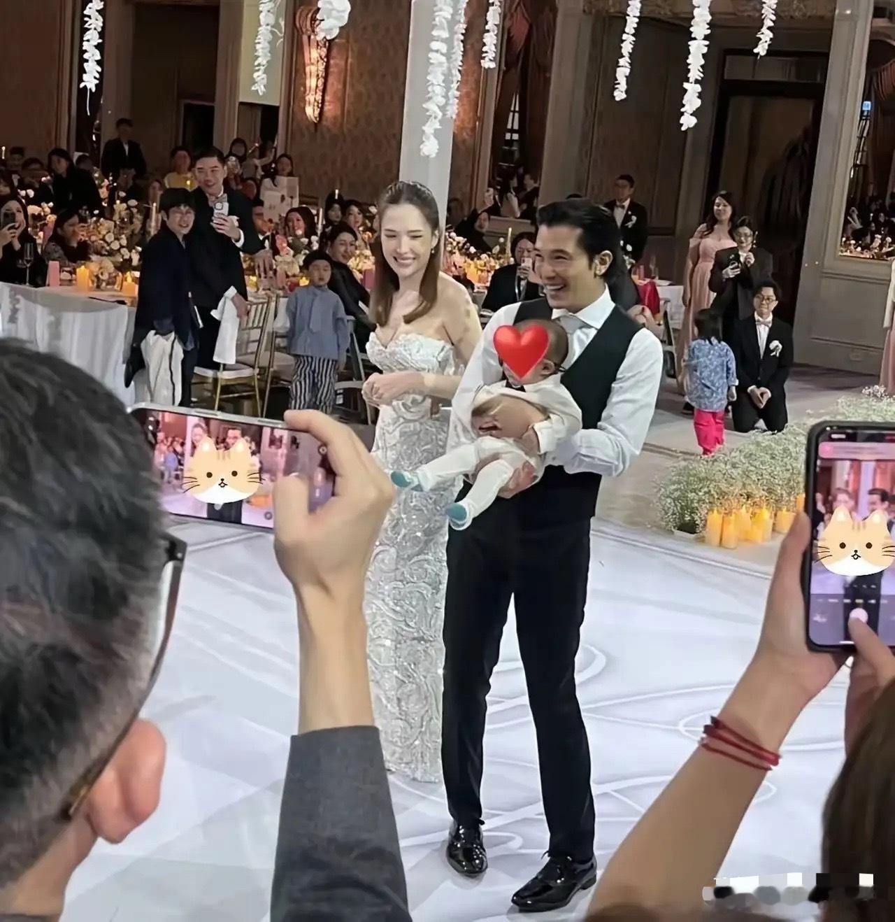 邱泽许玮宁一家三口首同框!许玮甯和邱泽带儿子在婚礼上首露面,看似是小baby,感觉腿挺长的。爸妈基因这么好,这孩子的颜值很值得期待呢