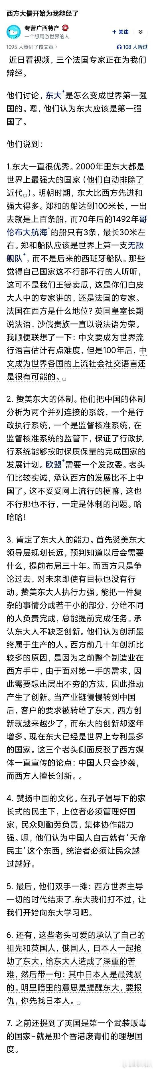 法国本来就是这样,对中国有吹有黑的,吹的代表是伏尔泰,黑子是孟德斯鸠。。ps,这二位其实说的都很有意思,不是单纯的无脑吹黑,大家有兴趣的可以了解一下 现在回想一下,看到美国人之前那些黑科技的时候忘了一个问题:到底是不是吹牛逼[看]法国 爆料mcn