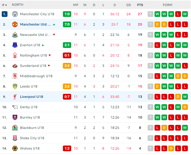 利物浦青训 U18双红会,2名主力中卫小西塞和克拉克缺席,中场奥康纳和艾曼本赛季一直在客串左右边后卫,中场默里霍尔姆停赛,AJ耶果似乎也受伤了,面对丢球最少的曼联,开场不到10分钟就落后,如此熟悉的剧本其实对手遭遇三连败+2场互交白卷,近5场不胜,今天可算开荤了,为米斯丘尔难过