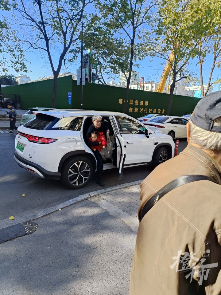 现场没有违停车辆,记者在现场停留了半个小时,只有一辆白色轿车在隔离柱尾部停靠了十几秒,车上下来一老一少,该轿车往北停进了一个道路旁的划线泊位内。