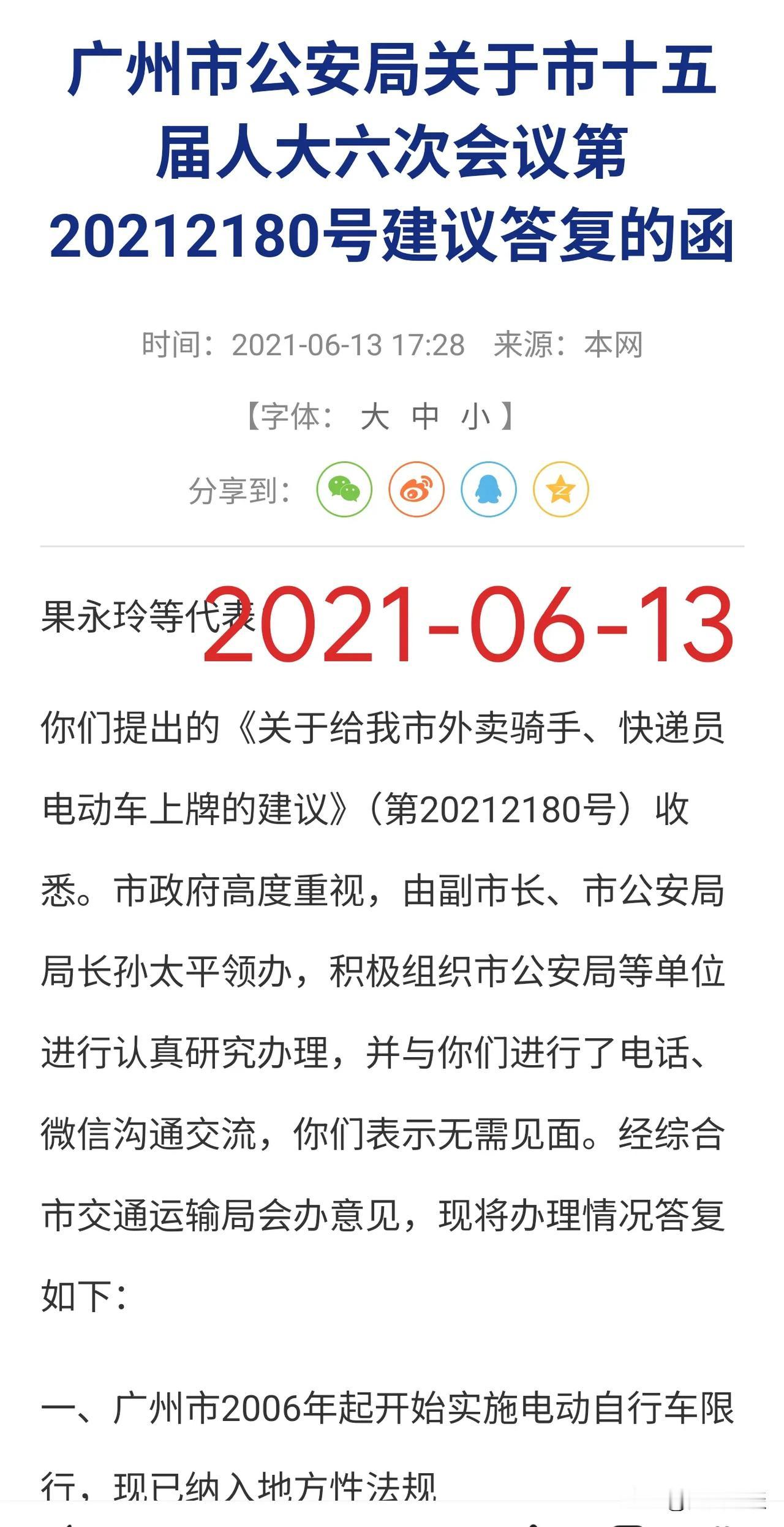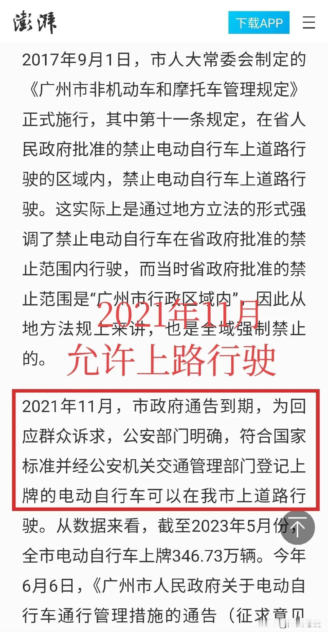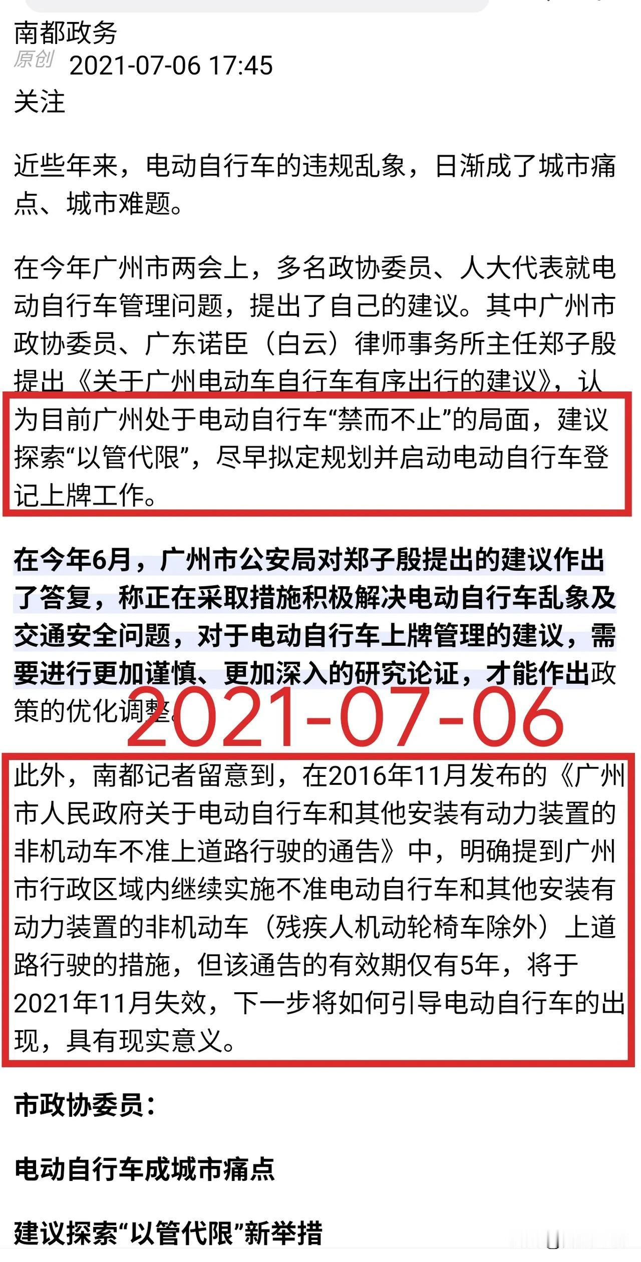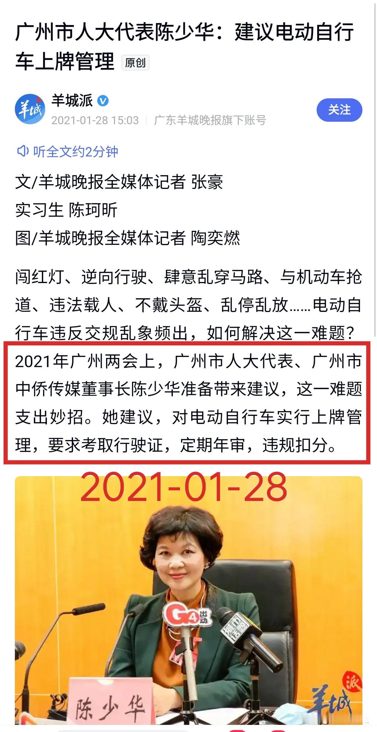 【重磅】推动广州电动自行车上牌的竟然是——公交系统! 捋顺影响广州方方面面的“电鸡上路”之前世今生!回到四年前的2021年底,面对全市超300万辆电动自行车,是否开放电动自行车上牌,最终尘埃落定——允许! 提议上牌纳入管理的有来自公交系统、传媒行业、律师行业等!允许“电鸡”上路最终是集体智慧的结晶!给电鸡以身份! 自2006年起开始实施,并两次延长的,共计实行了15年的广州电动自行车禁止上路行驶的通告寿终正寝! 从此广州全市允许电动自行车上路行驶,并推出了广州电动自行车白色个人普通号牌和外卖快递蓝牌。 广州电动自行车迎来爆发式增长,每个月上牌数增加10万辆。 目前已经超过了600万辆!超过四分之三的家庭有电动自行车。担负起广州交通的三分之一,运输量仅次于地铁。 电动自行车等非机动车为广州中心城区绿色通行率领先全国超大城市,做出了巨大贡献! 电动自行车灵活小巧,电力驱动,又无声无息,走人行道,逆行,走机动车道的地铁很多,司空见惯。 管理起来很难,但不是无法管理。 通过合理分配道路资源,非机动车停车区与人行道分离等措施,还是可以管理好的。 道阻且艰,行则将至!