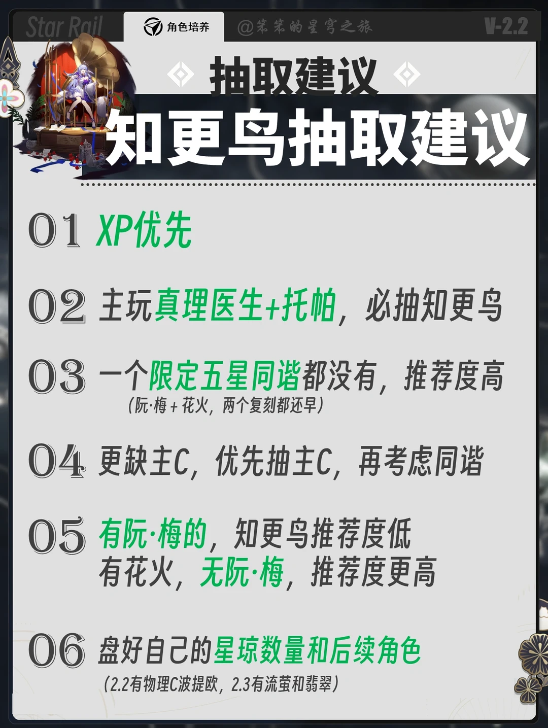 🐱大家好,我是笨笨 今天给大家带来的是五星同谐比较 其中包含2.2上期五星限定知更鸟 所有知更鸟的内容来自创作体验服 具体以正式版本为主 上线后笨笨也会出更详细的培养攻略