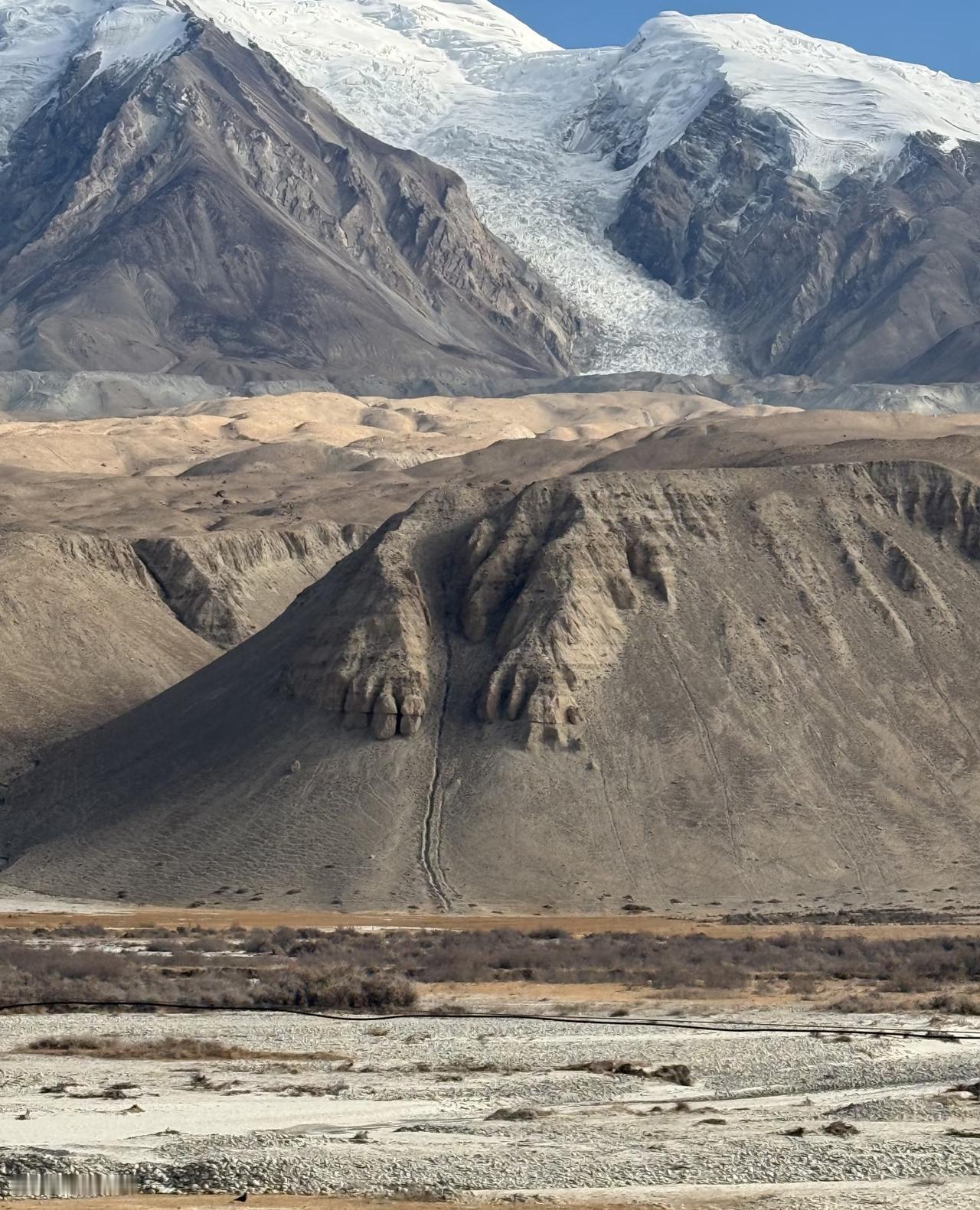 昆仑山这个造型有什么说法? 如图,在南疆塔什库尔干路过看到山上有两个大爪[呲牙]