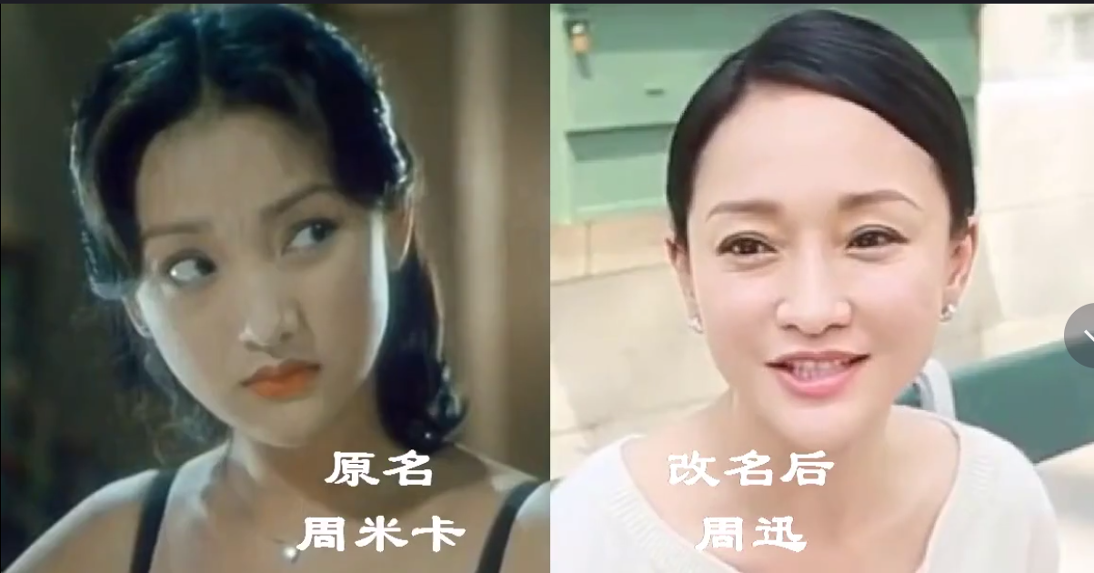 刘亦菲的原来的名字很洋气。 萧蔷的原来的名字很普通。 叶童的原来的名字很洋气。 温碧霞的原来的名字很普通。 周迅的原来的名字很洋气。 容祖儿的原来的名字很普通。 王菲的原来的名字很洋气。 徐小凤的原来的名字很洋气。