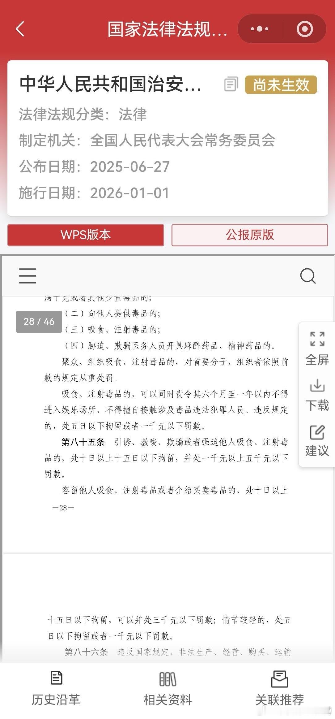 2025-6-27号就公布的法律法规,现在才让大家上看到,2026-1-1号就要生效了 八十三条,八十四条,八十五条,夹在中间是生怕被大家发现是吗???什么时候吸毒贩毒处罚力度可以变得这么轻了,如何对得起千千万万的缉毒英雄和他们的家人?