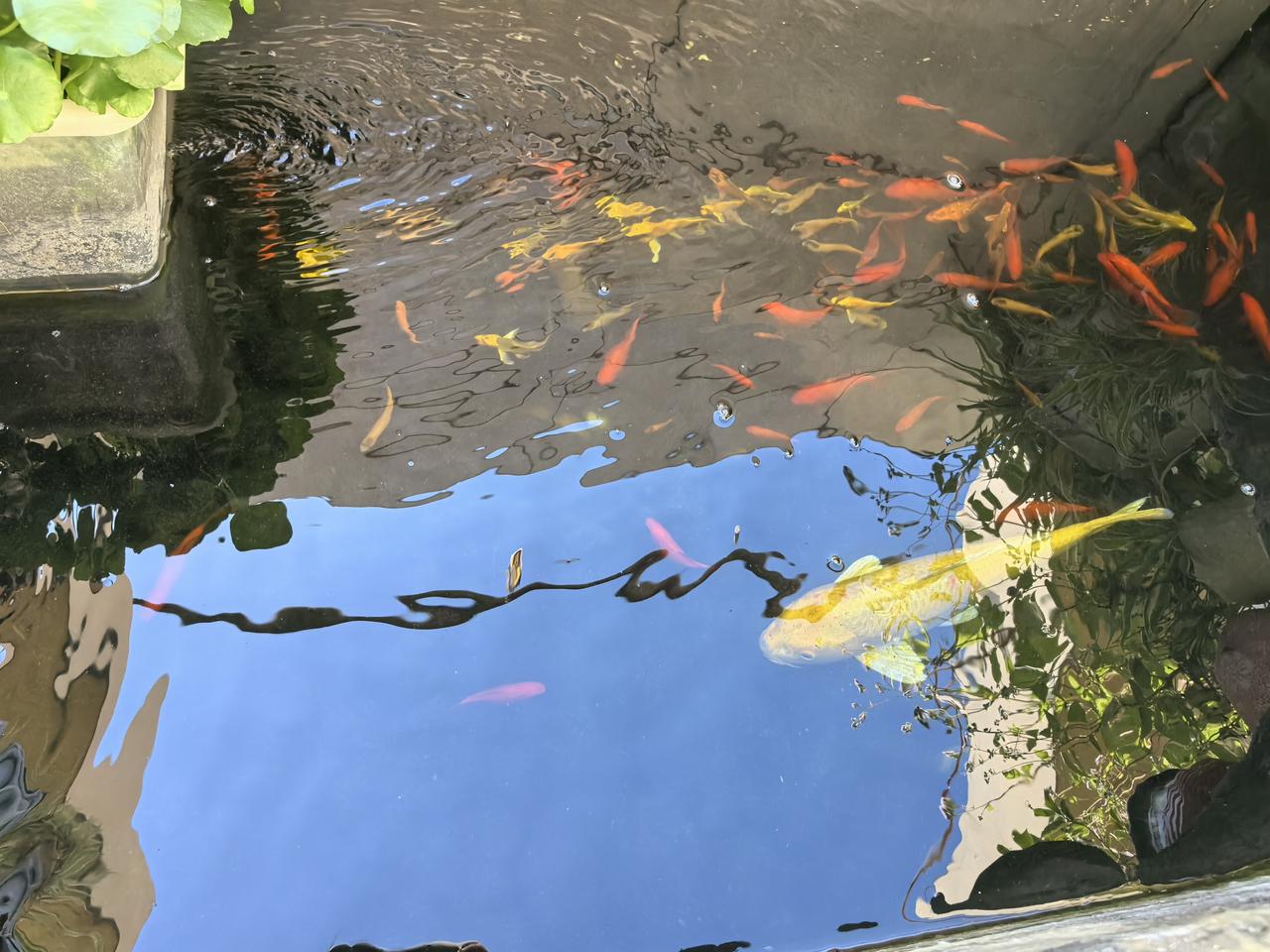 初冬的小晒台绿意盎然啊 好久没有仔细搭理我家晒台了,今日上楼瞅瞅我的果蔬、菜菜及鱼池子,突然发现,它们没有我的细心照料,依然活的那么丰满。 先看鱼池,这鱼们和小朋友一样呢,大孩子不和小孩子玩。看,这条大锦鲤也不和小不点金鱼玩。拿抄网把它们赶到一处,锦鲤翻个身又不屑的扭身躲到铜钱草下面的角角里了。这些被乌龟追着跑,适者生存下来的小金鱼也逐渐长大了,乌龟再也伤害不了它们啦。 再看随手捡枝扦插的桂花,居然开了花,根也长粗壮了不少。另外一棵被伙计判“死刑”他非要扔掉,又被我偷偷抱回家,只剩树根的金桔树,居然长出来了一根枝丫,太神器啦。所以说,轻易不要放弃,谁知道这枯木啥时候逢春,被埋在土里的根正在悄悄酝酿生机呢? 忍不住又摘了一个金桔塞进嘴里,我亲手种下的果实,就该在心情舒畅的时候再为我多添一点蜜。 最后想问下懂种植的友友,红菜苔长成了这样,壮观的很,为啥不抽苔呢?市面上我都买过无数次红菜苔吃了,花盆里的这些啥时候能起苔让我尝个鲜呢?在评论区等您的回复哦。