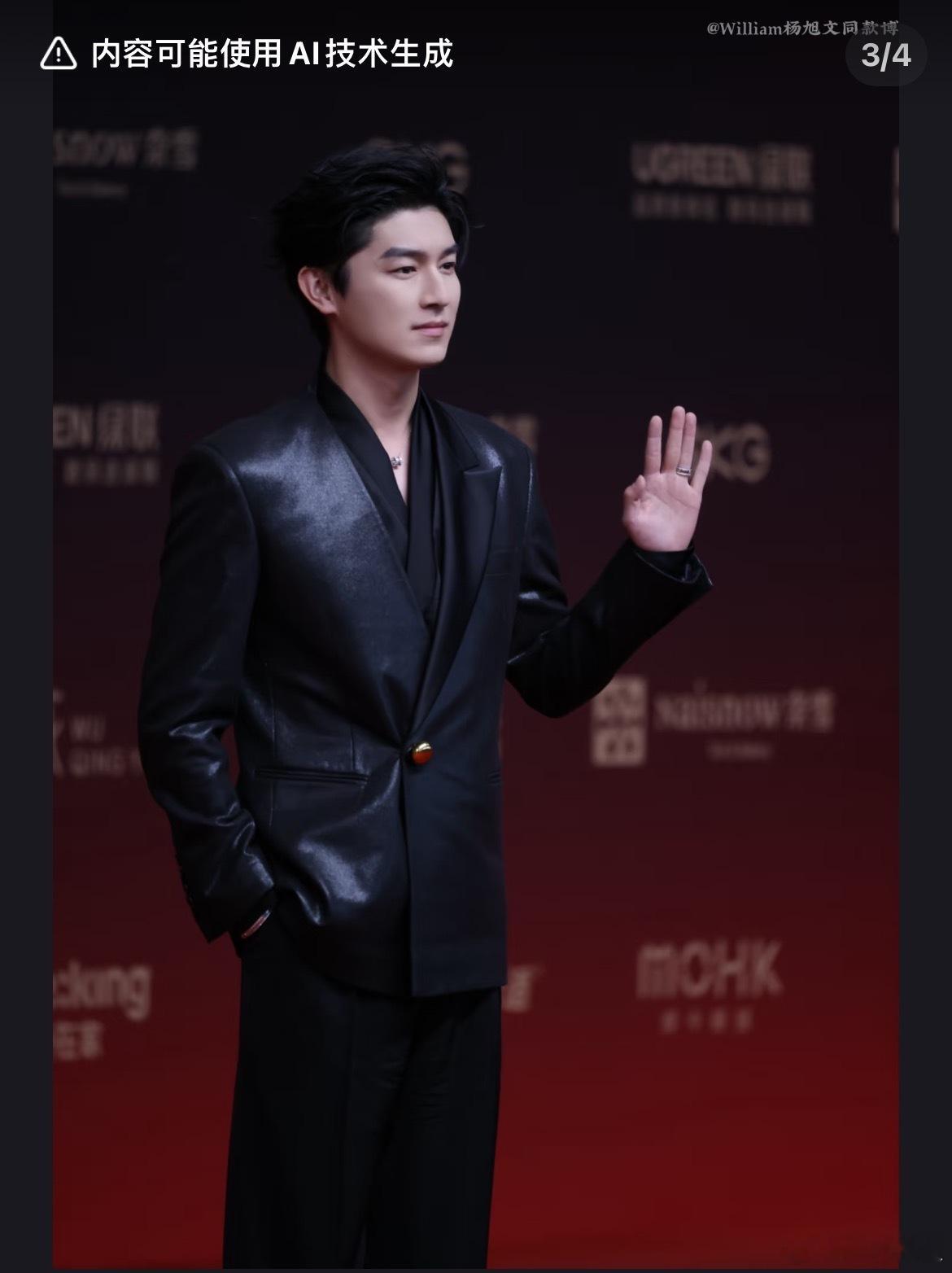 杨旭文红毯造型被识别AI 杨旭文的红毯造型真的太有记忆点了,高大的身材配上剪裁合体的西装,每一步都像走在时尚大片里。五官立体到像画出来的,难怪会被AI误判。恭喜他又拿奖,这就是颜值与实力的双重证明。