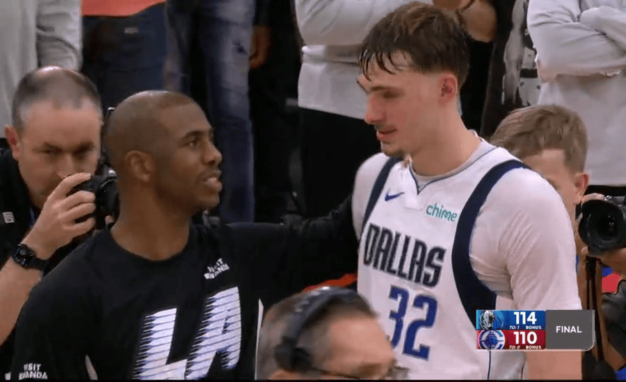 赛后,洛杉矶球迷自媒体OhNoHeDidn't,晒出了一张保罗和弗拉格赛后相互致意的截图,并配文道: