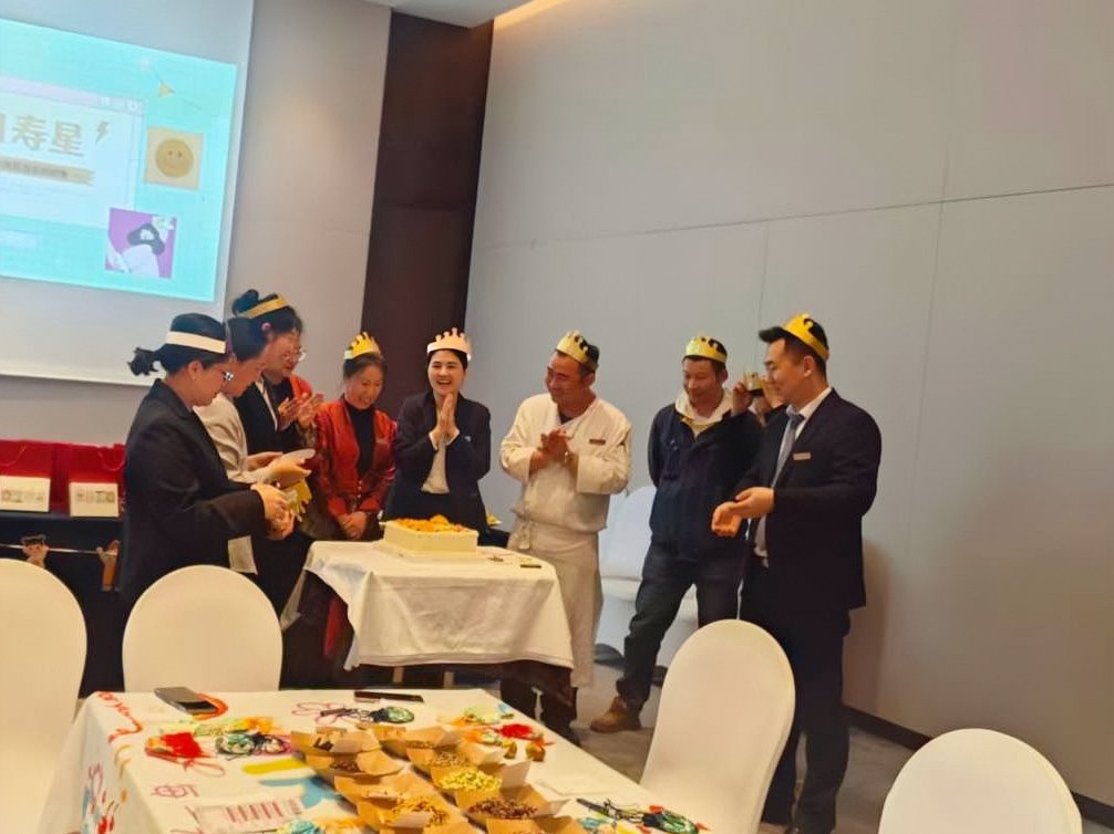 活动期间,酒店管理层向所有寿星送上了诚挚的生日祝福,并对大家一直以来为酒店发展所做出的贡献表示衷心感谢。他们表示,员工是酒店最宝贵的财富,希望通过此类丰富多彩的文化活动,能让每一位员工都能在万达锦华这个大家庭中感受到温暖与快乐,从而以更饱满的热情投入到工作中,共同创造酒店更辉煌的明天。