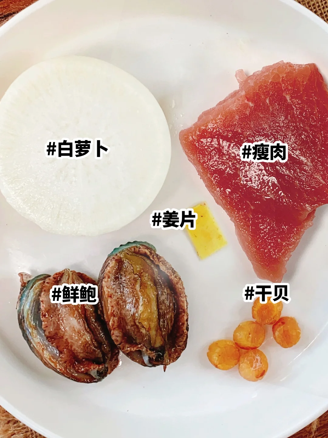 ▫️青橄榄▫️白萝卜▫️小鲜鲍▫️干贝▫️瘦肉
