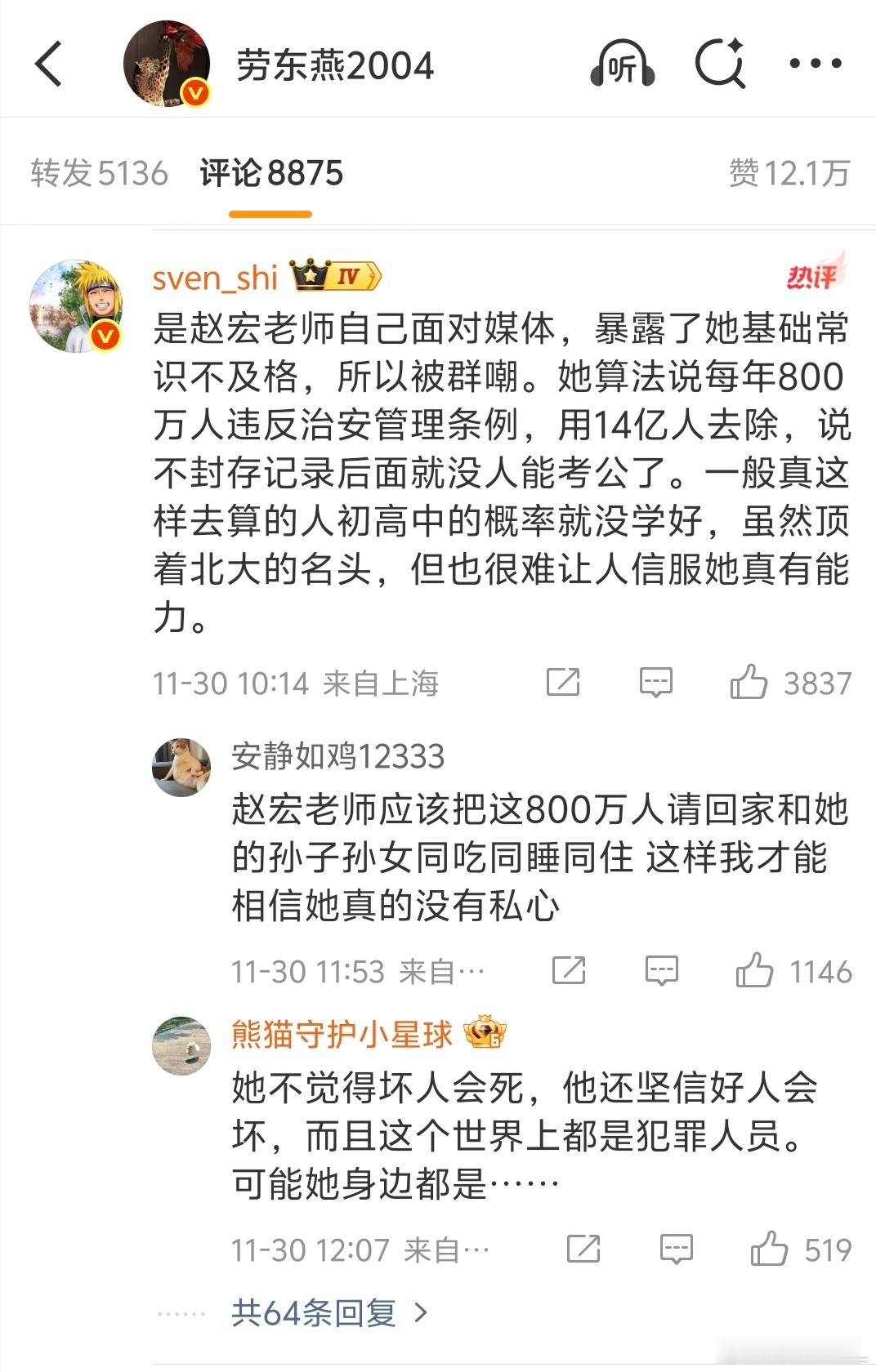 翻译一下劳教授的这条微博:你们可千万不要以为就一个北大的赵宏是歪屁股,我们法学圈