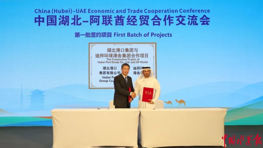 11月28日,中国湖北-阿联酋经贸合作交流会在迪拜举行,湖北港口集团党委书记、董事长周勇士作专题推介,并作为第一批签约项目代表与迪拜环球港务集团签订战略合作协议。