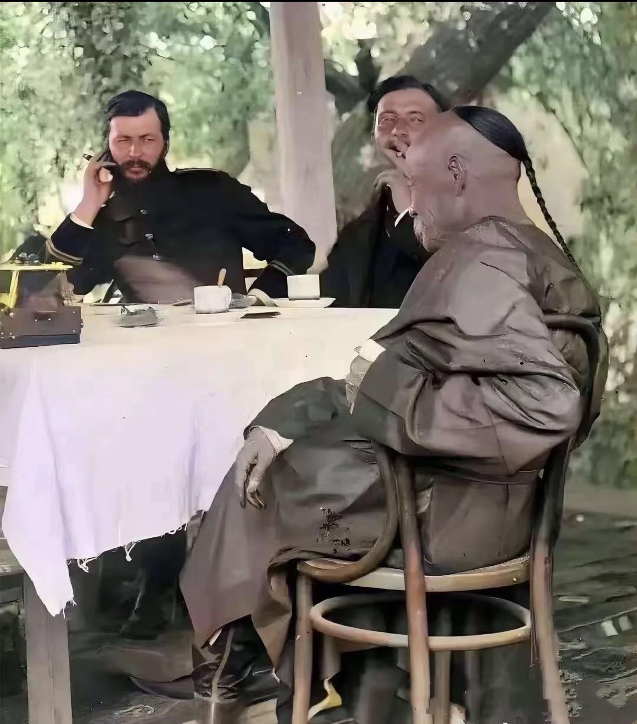 下图是晚清一位四品官员和西方人的一张合影,照片中的四品大员留着金钱鼠尾,和西装革
