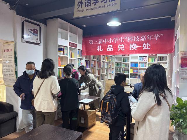 11月30日上午,市新华书店交通路店二楼,第三届中小学生“科技嘉年华”兑奖处,不时有人拿着兑奖券来兑换奖品。