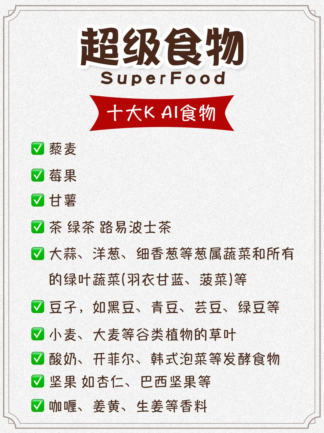 超级食物3 优质莓果 十大豆类 十大种子 十大坚果 十大K AI食物 健康的甜味料 优质的天然草药 十大常见香料 防止胃灼热的食物 十字花科蔬菜 十大绿叶蔬菜 十大养心食物 K hypertension食物