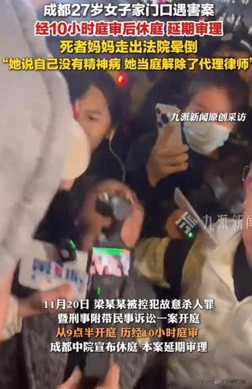 成都,27岁的小雅在家门口突遭同小区邻居梁某某连刺十刀,经抢救无效离世。此案开庭时,凶手梁某某在法庭态度嚣张,受害者母亲悲痛欲绝,坚定要求判其死刑。 据凤凰网、九派新闻、极目新闻、山河新闻等报道,27岁的小雅,本有着令人羡慕的人生,保送名校又留学归来,性格开朗热爱运动。 可谁能想到,这么美好的一个人,就在家门口遭遇了这样的厄运。 可2024年6月9日中午,一切都变了。 那天中午,小雅刚回到家门口,就碰上了同小区的梁某某。 这梁某某也不知道咋回事,突然就上来滋扰小雅。 小雅当时都懵了,赶紧给母亲王女士打电话。 王女士一听就急了,立马联系物业,让保安赶紧过来。 保安来得还挺快,没一会就到了现场。 小雅看到保安来了,心里稍微踏实了点,就质问梁某某到底想干什么。 可这梁某某也不知道是受了什么刺激,突然情绪就失控了,从身上掏出刀,对着小雅就是一顿猛刺。 小雅根本来不及反应,只能本能地奋力反抗。 保安看到这情况,也赶紧上前阻拦,并报了警。 可梁某某就像疯了一样,根本不听劝,继续疯狂地刺向小雅。 小雅虽然拼命反抗,但还是因为伤势过重,倒在了地上。 等急救人员赶到的时候,小雅已经没了生命体征。 王女士赶到时,整个人都崩溃了。 她怎么也想不明白,自己的女儿好好的,怎么就在家门口遭遇了这样的事情。 后来她才知道,原来这梁某某早在2023年8月就有异常行为,还随身带刀。 可当时物业和家属都没太在意,也没采取什么有效的措施来管管她,这才导致了后面的悲剧发生。 梁某某被抓后,一开始是以故意伤害罪被批捕的。 可随着调查的深入,发现证据显示她主观上有杀人的意图,就把罪名改成了故意杀人罪。 这故意伤害致死和故意杀人罪,在判罚上差别可大了。 故意伤害致死,最高能判无期徒刑,而故意杀人罪,最高可是能判死刑的。 2025年11月20日,该案开庭审理。 在法庭上,梁某某的态度很嚣张,不仅没有一点悔意,还否认之前的精神鉴定结果。 这可把王女士气坏了,她看着梁某某那嚣张的样子,悲痛欲绝,心里只有一个念头,就是一定要让法律还女儿一个公道,判梁某某死刑。 有人说这梁某某太残忍了,必须严惩。 也有人说,物业和家属也有责任,要是早点重视梁某某的异常行为,也许就不会发生这样的事情了。 从法律的角度来看,这案子有几个关键的问题需要搞清楚。 1,梁某某的罪名认定 一开始以故意伤害罪批捕,后来改成故意杀人罪,这中间的依据是什么呢? 根据刑法规定,故意伤害罪是指故意非法损害他人身体健康的行为,而故意杀人罪是指故意非法剥夺他人生命的行为。 怎么判断梁某某是故意伤害,还是故意杀人呢? 这就要看她的主观意图和客观行为,从该案来看,梁某某掏出刀连刺小雅十刀,而且是在小雅反抗、保安阻拦的情况下,还继续行凶,这说明她主观上有剥夺小雅生命的故意,而不是仅仅想伤害她。 所以,改成故意杀人罪是合理的。 梁某某被鉴定为部分刑事责任能力,这会影响她的量刑吗? 根据刑法规定,尚未完全丧失辨认或者控制自己行为能力的精神病人犯罪的,应当负刑事责任,但是可以从轻或者减轻处罚。 不过,这并不意味着她就可以逃避法律的严惩。 该案中,梁某某的犯罪手段极其残忍,后果特别严重,即使她是部分刑事责任能力,也不能成为减轻她罪责的理由。 2,物业在这案子里有没有责任 物业作为小区的管理者,有义务保障业主的人身和财产安全。 梁某某早在2023年8月就有异常行为,还随身带刀,物业却没有采取有效的措施来防范,存在一定的过错。 不过,物业的过错和梁某某的犯罪行为是两个不同的法律关系,物业最多也就是承担一定的民事赔偿责任,而梁某某还是要为自己的犯罪行为承担刑事责任。 遇到身边有行为异常、可能有暴力倾向的人,一定要及时反映,让专业的人来处理。 物业要加强管理,及时发现和处理安全隐患,保障业主的安全。 目前,该案还没有一审判决,王女士只盼着法律能还女儿一个公道,让凶手得到应有的惩罚。