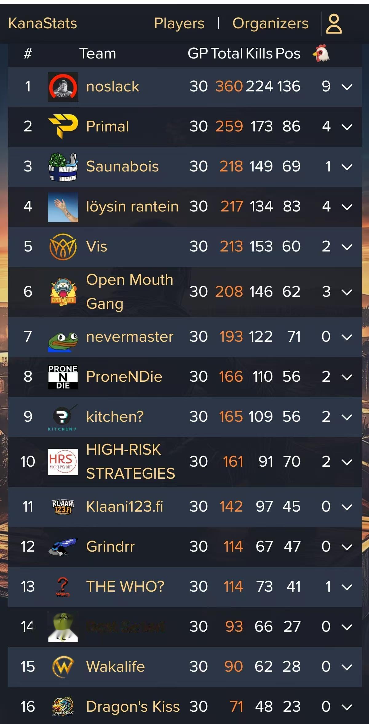 虎扑12月01日讯PUBG芬兰联赛结束:noslack夺冠