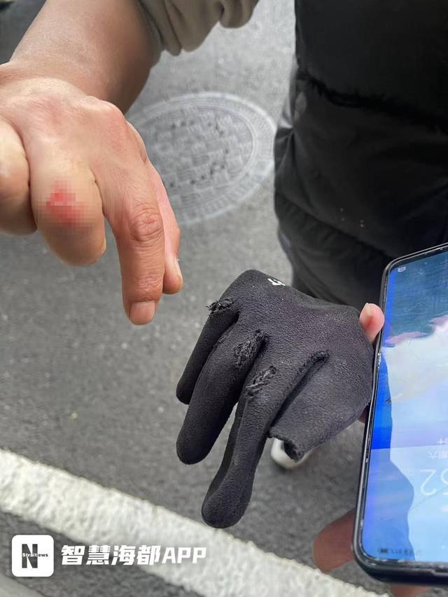电动自行车驾驶人佩戴了头盔并穿戴了厚外套和手套,仅受了一些皮外伤