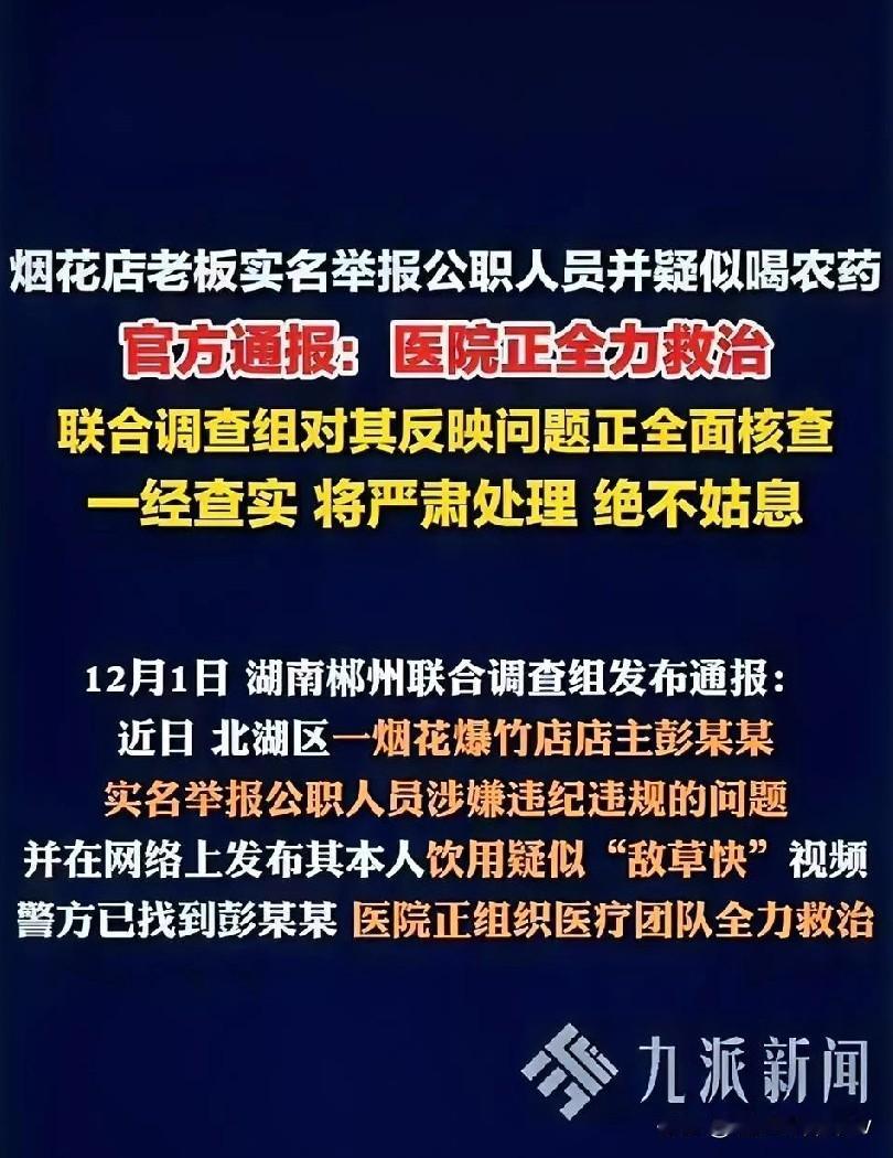千万存货压垮店主,办个许可证咋就逼得人走绝路? 11月30号郴州那声巨响,不光炸塌了烟花店,还炸出了普通人合规谋生的难。 事发当天早上7点多,同心路的烟花爆竹店突然燃爆,火光冲天浓烟滚滚,门店墙体直接塌成了废墟,路边的白色轿车被冲击波掀翻还烧了起来,附近居民家的窗户玻璃都震碎了,3个人受伤送医 。可比爆炸更让人揪心的是背后的隐情:店主彭老板囤了上千万的货准备过年卖,结果烟花爆竹零售许可证提交了好几次,硬生生卡在那办不下来 。 要知道这零售许可证按规定是县级应急局负责,材料齐全的话承诺7个工作日就能办 ,既没数量限制,也不是多复杂的审批,咋就成了拦路虎?逼得他实名举报公职人员违纪违规,还录了自己喝疑似“敌草快”的视频——这药跟百草枯是一类,没特效药,致死率极高,不是走投无路谁会碰这东西 ? 现在联合调查组已经介入,说查实了会严肃处理,这是必须的。但这事戳中了很多人的痛点:普通人想规规矩矩做生意,按流程办事,为啥总会遇到“卡脖子”的情况?上千万的存货是家底,合规经营是本分,可一道许可证的坎,就把人逼到了喝农药、门店燃爆的绝境。 办许可证的初衷是为了安全,不是为了刁难经营者。要是材料不齐就一次性说清,要是有合规问题就明确指导,别让“多次提交办不下来”变成常态。普通人讨生活不容易,合规的路该多些顺畅,少些卡点,别让老实人流汗又流泪。 希望调查组能查个水落石出,不光要揪出可能存在的违纪违规,更要理顺办事流程。毕竟,不让合规谋生的人寒心,才是最基本的底线。