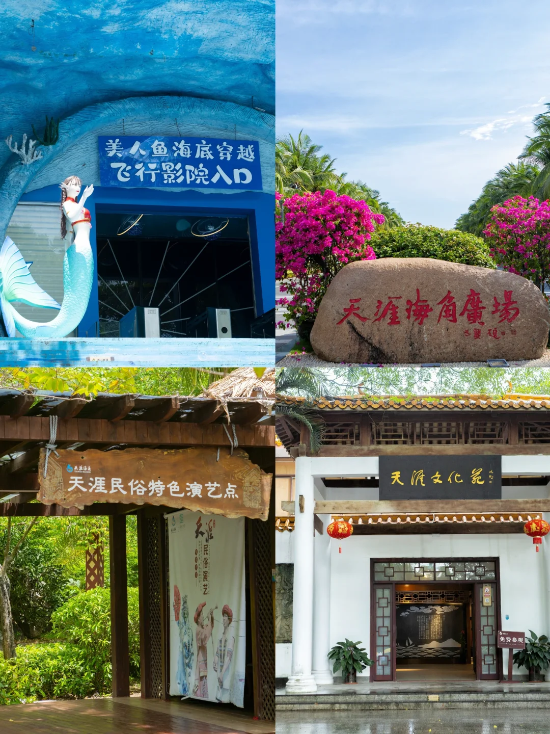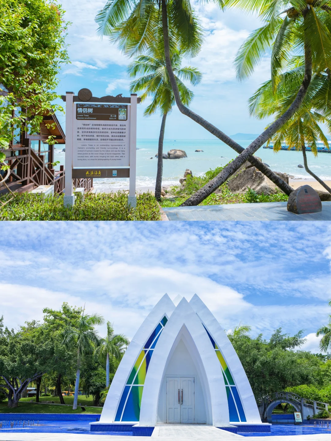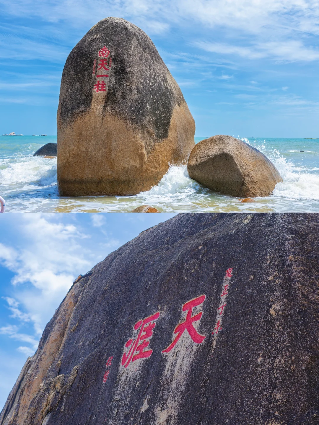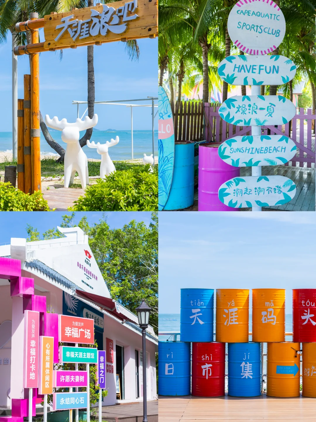 此生必去三亚的天涯海角, 听说这里是海上生明月很美, 听说这里的山盟海誓很感人, 什么烦心事都不过南天一柱, 浩瀚无比的大海就是天涯的尽头。 .[流汗R] 三亚这一站来到天涯海角, 不要以为只有那个拍照的大石头, 其实还有很多打卡点和游玩项目。 .[流汗R] 建议玩法: 景区挺大的,预订一个往返游览车,方便舒服; 海边观光打卡,天涯书局茶歇 - 南天一柱&天涯海角石,不可错过的打卡点, 旧款2💰RMB背面印刷图片, 所有的采景地就是南天一柱[流汗R] 旁边就是天涯海角石,天涯石在海滩上很容易看到,上面的天涯红字书法刚劲有力;海角石在的另一边,故叫海角石,走下沙滩往海边望去就能看到。 .[流汗R] 情侣树,据说是台风下把椰子树变成有爱的“捆绑”,寓意着经过大风大浪,有缘人终究会终成眷属啊[爱心R],北纬18度的浪漫在这里得到诠释~ . 天涯书局,里面大有乾坤, 很多天涯海角的周边,很适合带走一个纪念品, 有书有咖啡,治愈来这里游玩的你,打开你的心境界。而且天涯书局很好看,设计感很吸引。 . Ins风婚纱摄影基地, 已经非常成熟和完善的摄影基地, 随手都能拍海边大片,各种浪漫的道具和背景, 喜欢拍照的小伙伴可以在这里发挥一下特长了。 .[爱心R] 天涯露营区, 在海边露营这种玩法真的羡煞旁人啊, 无敌海景让你心旷神怡,吃点下午茶就很享受。 .[爱心R] 其他打卡点还有美人鱼海底穿越飞行电影院,天涯海角广场, 天涯民俗特色演艺点,天涯文化苑, 都有值得闲逛游玩的地方。 [爱心R] 玩乐项目 天涯海角除了景区,现在还有许多游玩项目, 比如高空滑索、海上秋千,沙滩越野,彩虹卡丁车,冲浪等等,有一个必玩的,天涯海角深海VR探险,大人小孩都有不同的玩法哦。 [爱心R]