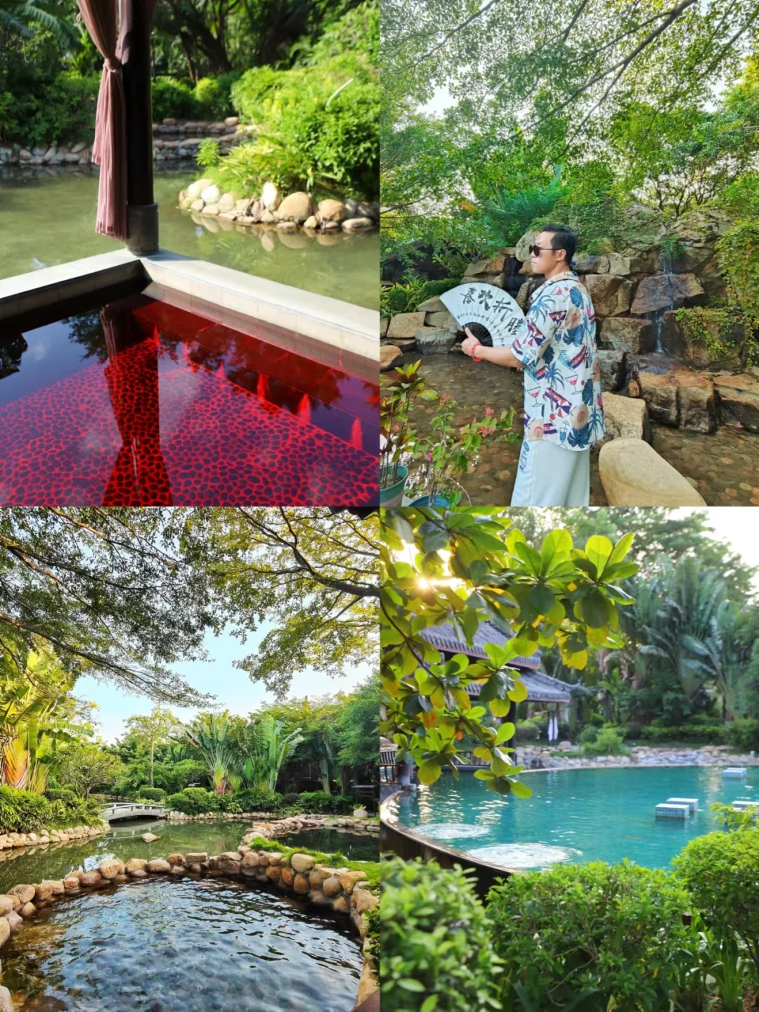 秋冬季节来啦,温泉都在暗送秋波,秋日出游选温泉你get√到了吗? [种草R][种草R][种草R] 位于广东茂名的天然古温泉已经很多年历史了,这里的珍稀矿温泉区域是获得国家认证的4A级景区,而且源头就藏在御水古温泉酒店的温泉区里,在这里泡温泉,非常有治愈力。 [种草R][种草R][种草R] 房间外部是古风建筑,我入住的映月楼,听名字都有一股古风的韵味,房间精致优雅,还专门有古风装饰飘台,提前安排好的精致茶具,在这里叹茶也是一种风情。 [种草R][种草R][种草R] 我入住酒店后,迫不及待地往酒店的温泉区跑去,感觉像是走进了画里泡温泉,森系风格+古风风情,感受不一样的温泉泡汤体验!近40个功能各异的泡池,有红酒池,牛奶池,五行池,冰火池,还有梦幻水疗池,都在绿植环绕之中,而且还有明代古戏台,凉亭等建筑,组合成了山水庭院画卷。 [种草R][种草R][种草R] 如果带娃来,大象水上乐园完全可以满足小朋友的玩乐,这里还有一大片戏水广场,儿童戏水区不仅是色彩缤纷,池水也是温暖的,爸妈不用担心小朋友玩水着凉啦,而且下午不定时有泡泡大作战,可以承包小朋友一天的快乐了。 [流汗R][流汗R][流汗R] 如果晚上来还可以泡着温泉看戏表演,温泉中庭的古戏台,晚上八点半就有古筝,古风舞蹈等表演,视觉和感官的双重体验啊! [流汗R][流汗R][流汗R] 酒店美食 可以享用山水轩中餐厅的美味粤菜,喜欢粤菜的朋友可以品尝一下这里的海鲜,山水豆腐等。 [流汗R][流汗R][流汗R]