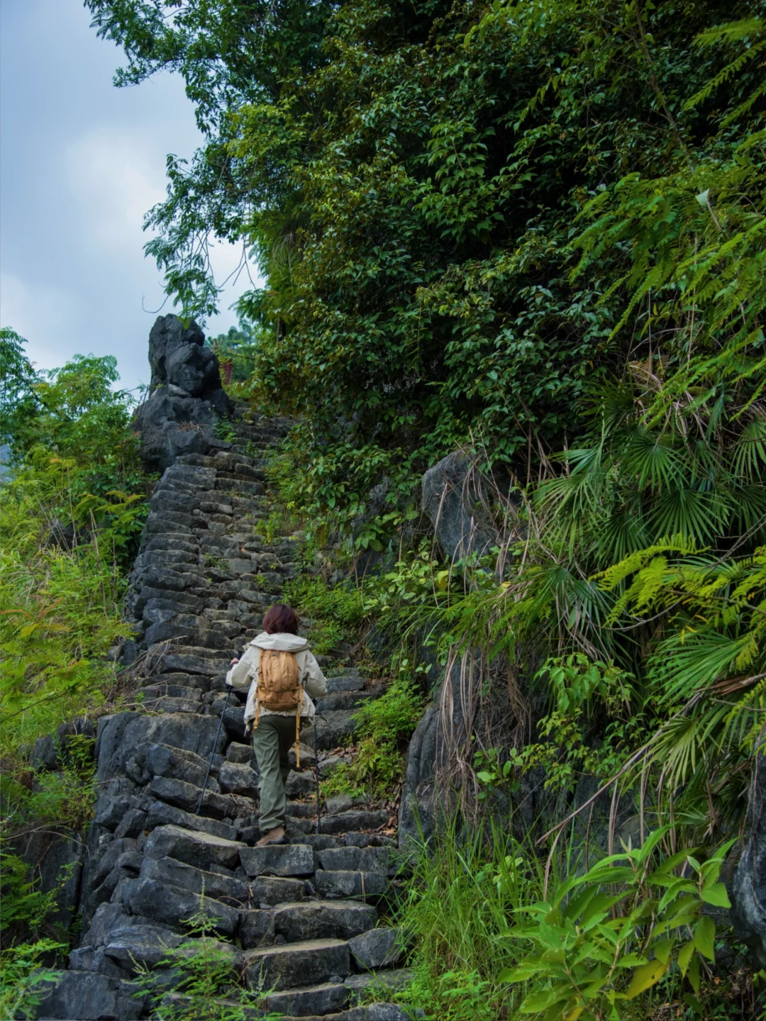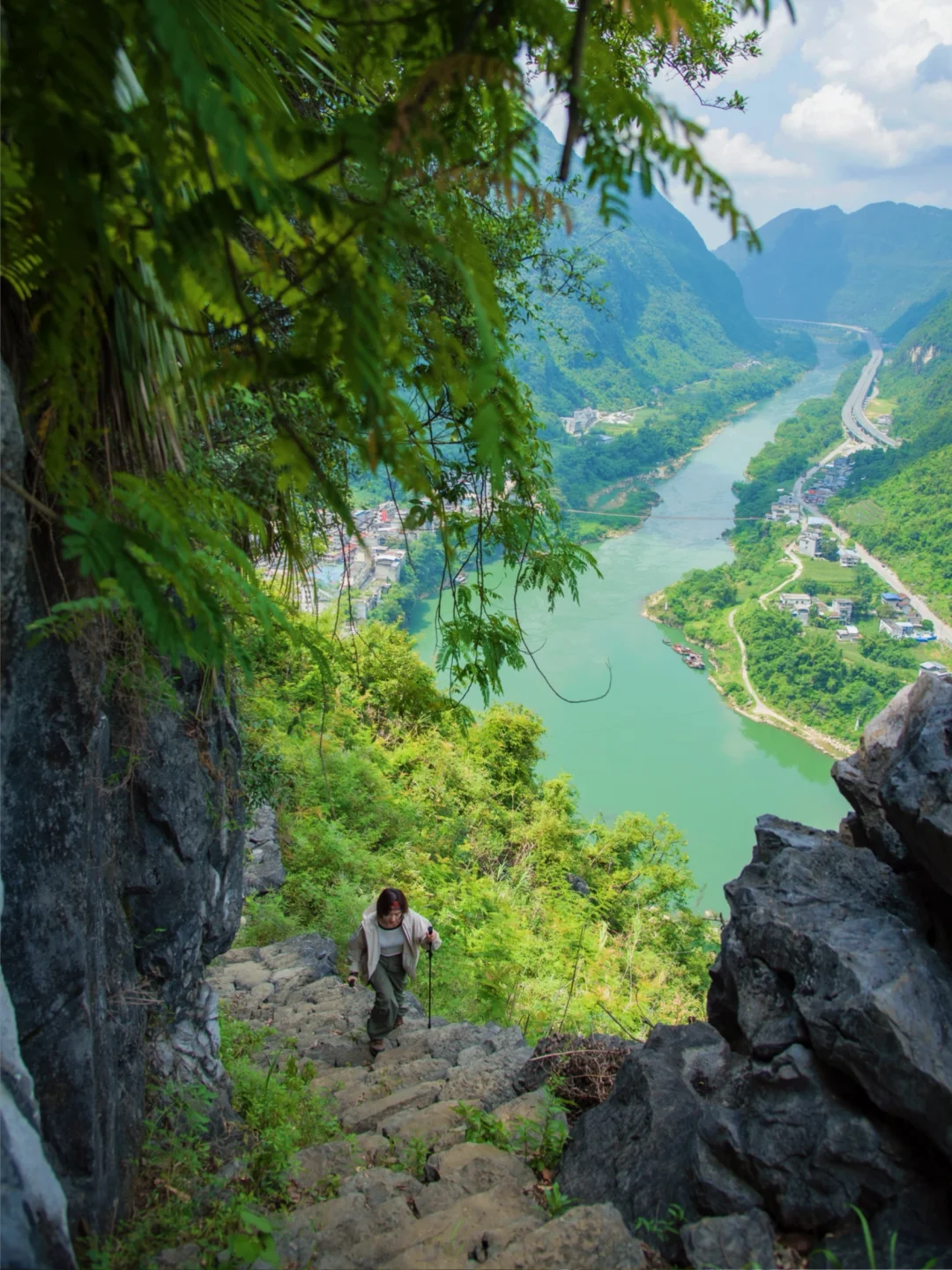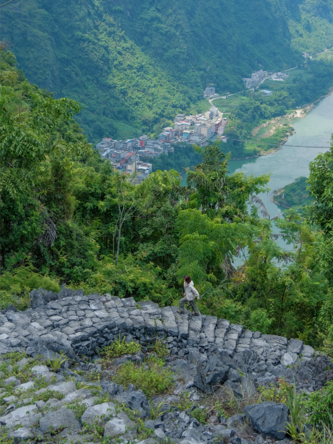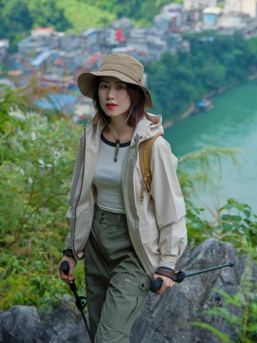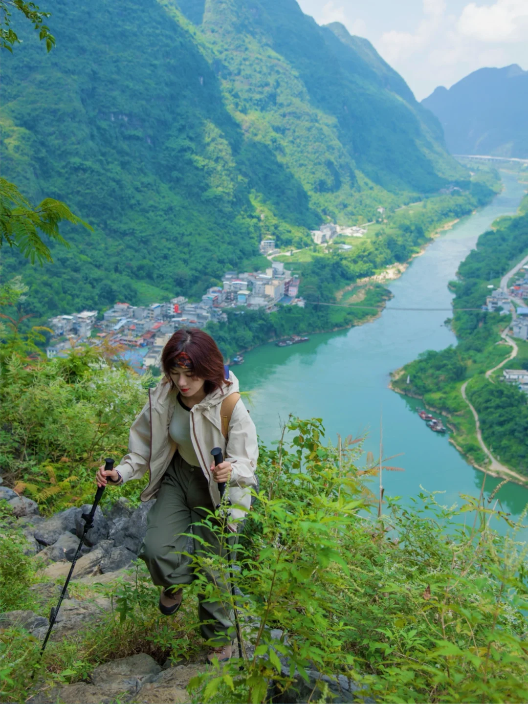 🚗 导航:河池都安·龙湾乡中心小学。沿着山路一直开看到龙湾古道牌子,停车路边,顺着太公豪宅的小道直走 🕗徒步时长:1-2小时 🗺️徒步线路:徒步起点→临水古道→石头堡垒 . 🎒徒步装备:魔力薇薇工装裤、魔力薇薇轻甲软壳外套、登山杖、小徒步背包、徒步鞋、帽子、头巾、舒适衣服、水500ml 💗山行工装软壳裤:休闲百搭干练又时尚,大容量工装口袋很实用,防水防油防污渍 💗轻甲软壳外套:防水防油防污,耐摩擦,两用口袋设计很实用,袖口可调节魔术贴设计 . 📝攻略: 1️⃣到龙湾乡中心小学沿着山路一直开看到龙湾古道牌子,停车路边,顺着太公豪宅的小道直走。车到山顶,走几十米就能获得虎跳峡分桂同款风景 2️⃣ 走临水路线只需要1公里左右,上午去基本不会晒到 3️⃣山下小学旁边有个通往河对面的吊桥,走在桥上看红水河还蛮特别的 4️⃣结合周边徒步、露营、钓鱼线路玩一个周末很适合 5️⃣龙湾古道设施不是很全,没有补给没有wc没有护栏,徒步需小心,蕞好携带登山杖💊包救济物品